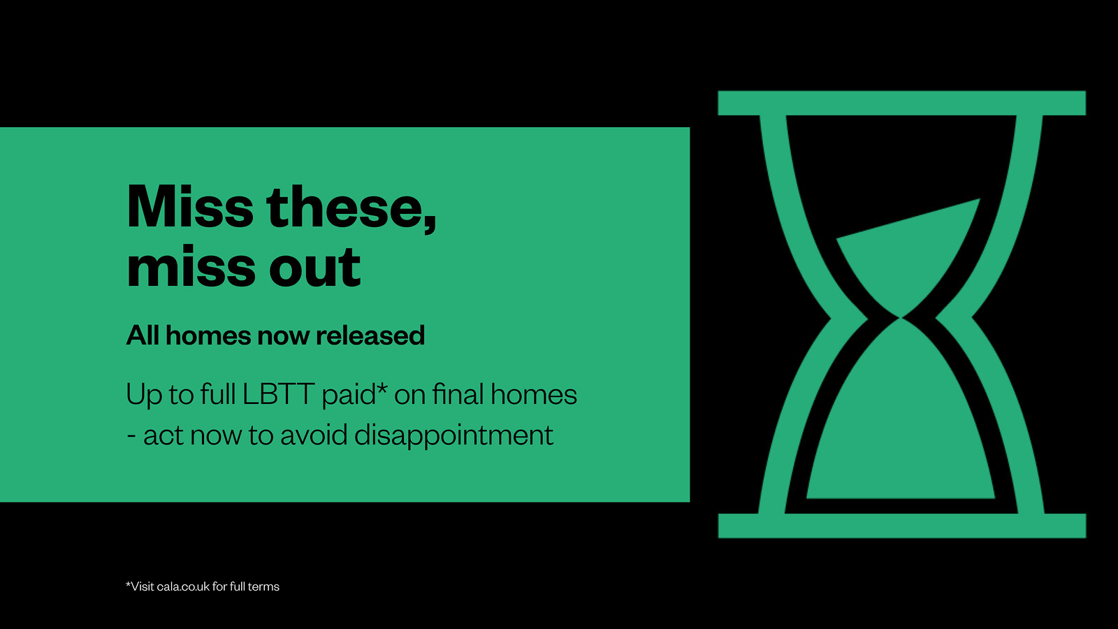 Move into a new Cala home without a chain - avoiding estate agent fees and survey/home report costs in the process.