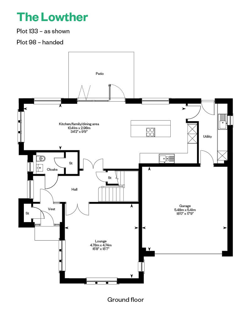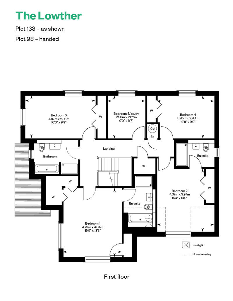 On the first floor, four double bedrooms and a fifth bedroom/study have access to a luxurious family bathroom. Two bedrooms feature an en suite, while the main bedroom benefits from the addition of a deeper corner wardrobe.