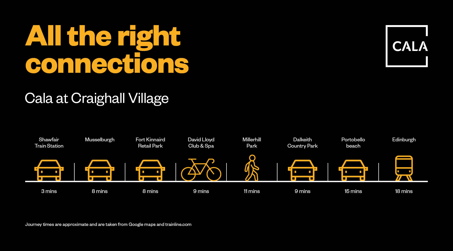 - Be well located: excellently positioned to enjoy the wealth of amenities that Shawfair, Edinburgh, Musselburgh and Dalkeith offer
