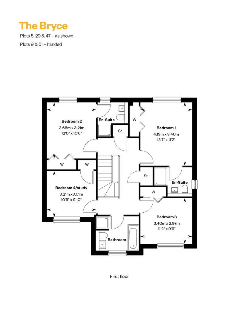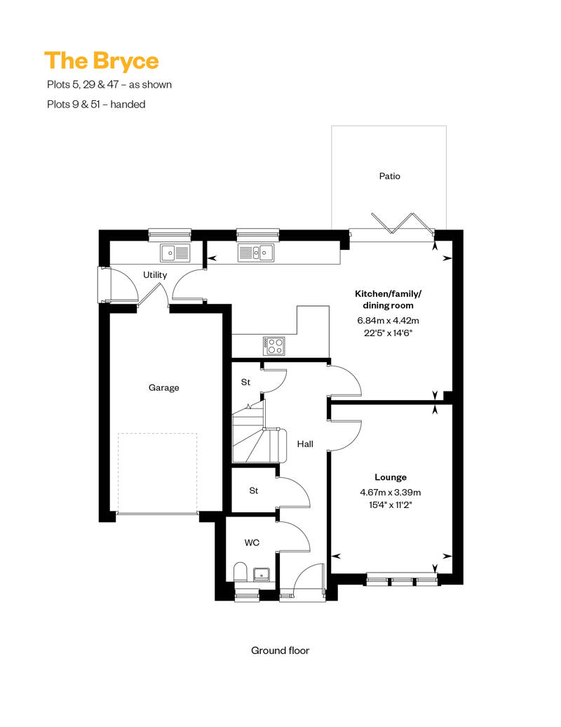 The charming Bryce features an inviting entrance hall, off which you’ll find an elegant lounge to the front of the home and an open plan studio designed kitchen and family/dining area with bifolds connecting you to your outdoor patio and garden. A downstairs WC, utility room, ample storage and integral garage complete the lower floor, and cater for all practicalities.