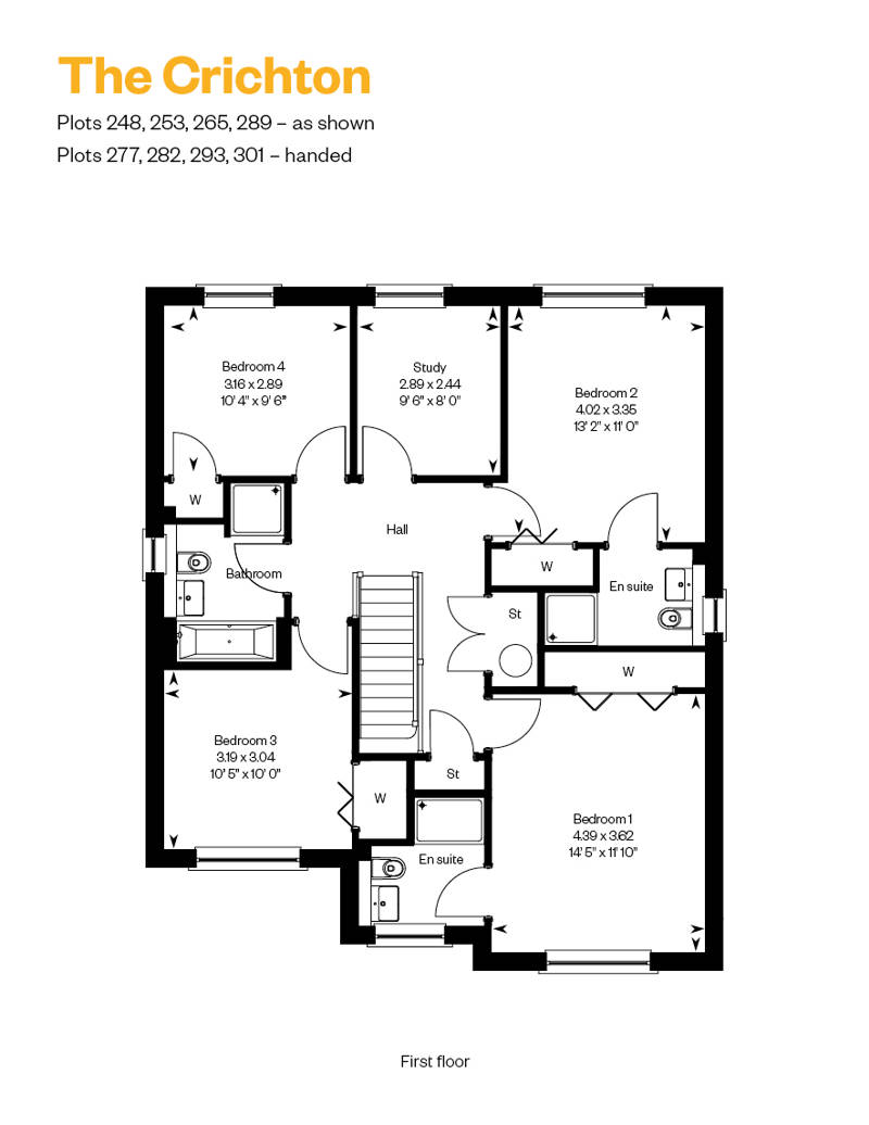 Four double bedrooms, two with en suite, plus a study/fifth bedroom make The Crichton a family home with room to grow.