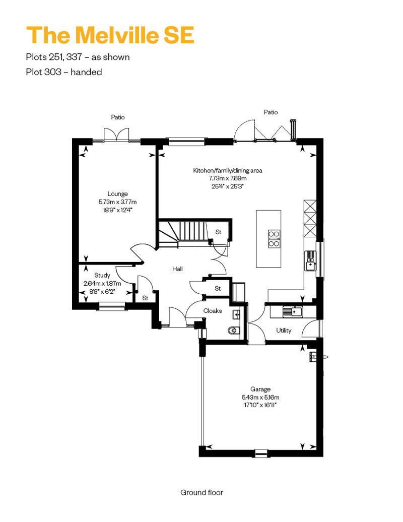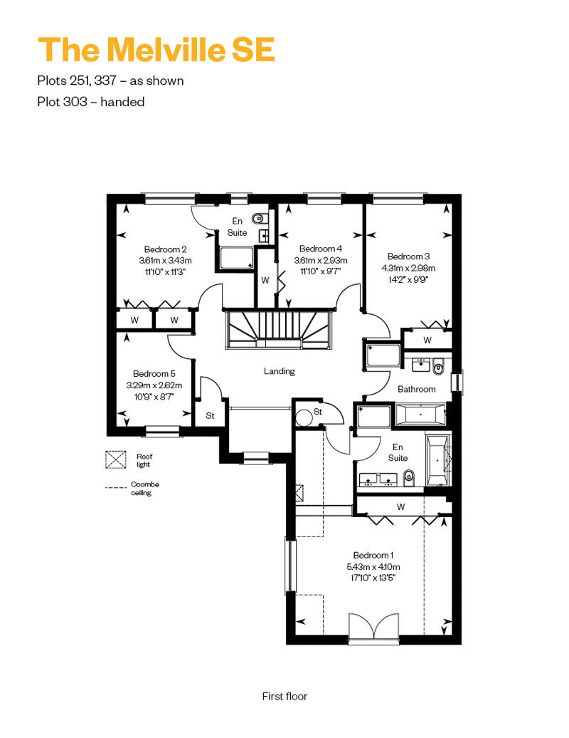 The charming L-shaped Melville enjoys an interlinked ground floor, with the exceptionally spacious lounge, including separate study, flowing into a sizeable kitchen area with dining and family space overlooking the rear garden. Upstairs the spacious landing takes you to five spacious bedrooms, two of which are en suite, and the family bathroom. Four bedrooms feature fitted wardrobes.