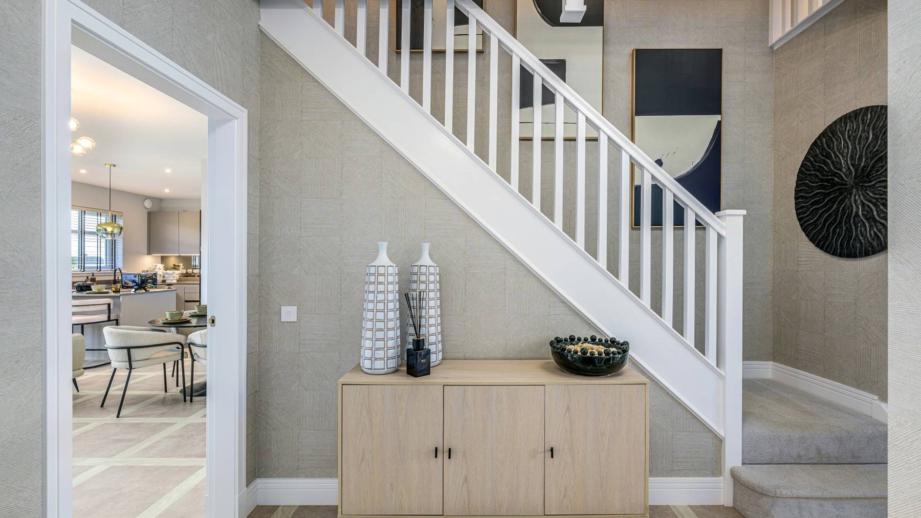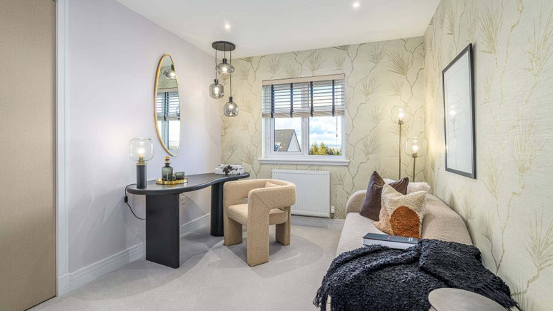 Upstairs boasts 5 bedrooms all with fitted bi-fold wardrobes as standard and two with ensuite bathrooms. The main bedroom also enjoys a dedicated dressing area with dual wardrobes, and a large window providing natural light.