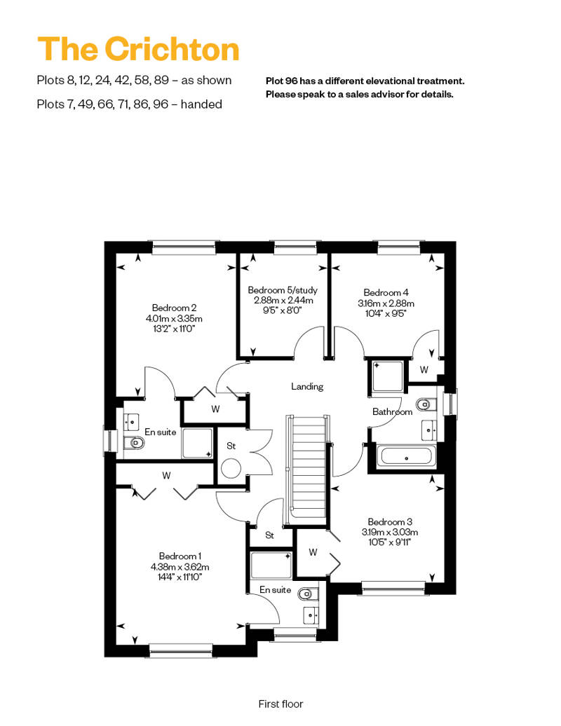 Four double bedrooms, two with en suite, plus a flexible fifth bedroom/study make The Crichton a family home with room to grow. The four larger bedrooms feature fitted wardrobes, and all rooms have access to a luxurious family bathroom.