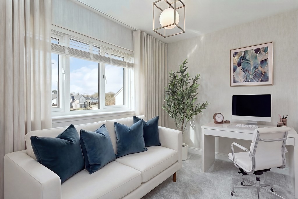 Photography may have been enhanced in post-production and may include upgrades at additional cost. Computer Generated Images may show features fittings, décor, flooring and soft furnishings which are not fitted as standard in a Cala home. CGIs are used to suggest possible finishes that can be achieved in your home at an additional cost. Please consult a Cala representative for further details. Predictive Energy Assessment and Energy Performance Certificate calculations in Scotland are changing. The specification and efficiency of our homes is not changing, but the EPC rating may, which could affect lending eligibility, particularly green mortgages. Visit www.cala.co.uk/epcscotland for more information or speak to a Cala sales representative.