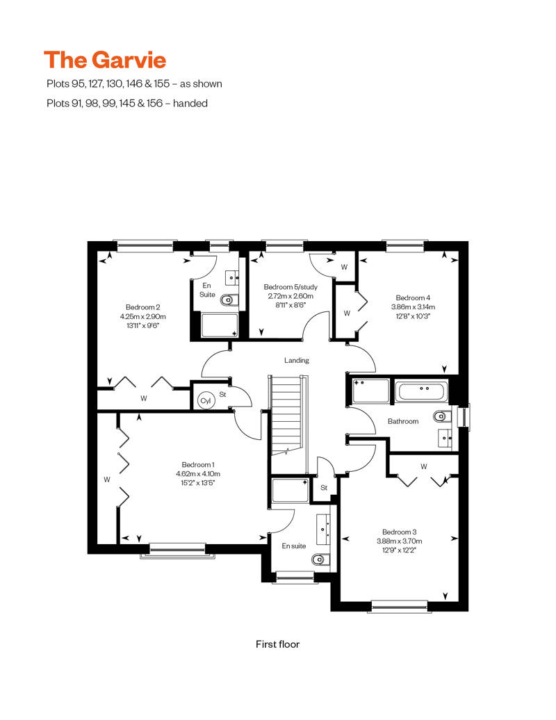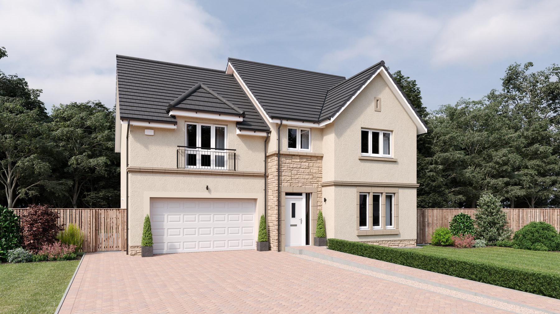 Comprising five spacious bedrooms, two with an en suite, The Garvie has been designed for flexible family luxury. From the spacious hallway, a formal lounge and the open plan kitchen/family/dining area are both accessed via double doors. Upstairs are four elegant bedrooms, two of which are en suite, along with a four-piece family bathroom. A fifth bedroom could also be used as a private study for home working.