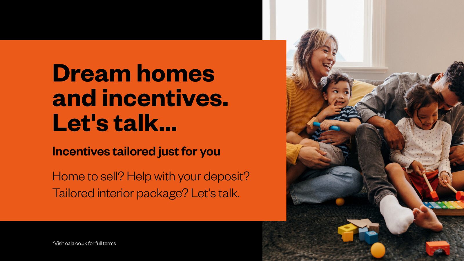 Photography may have been enhanced in post-production and may include upgrades at additional cost. Computer Generated Images may show features fittings, décor, flooring and soft furnishings which are not fitted as standard in a Cala home. CGIs are used to suggest possible finishes that can be achieved in your home at an additional cost. Please consult a Cala representative for further details.