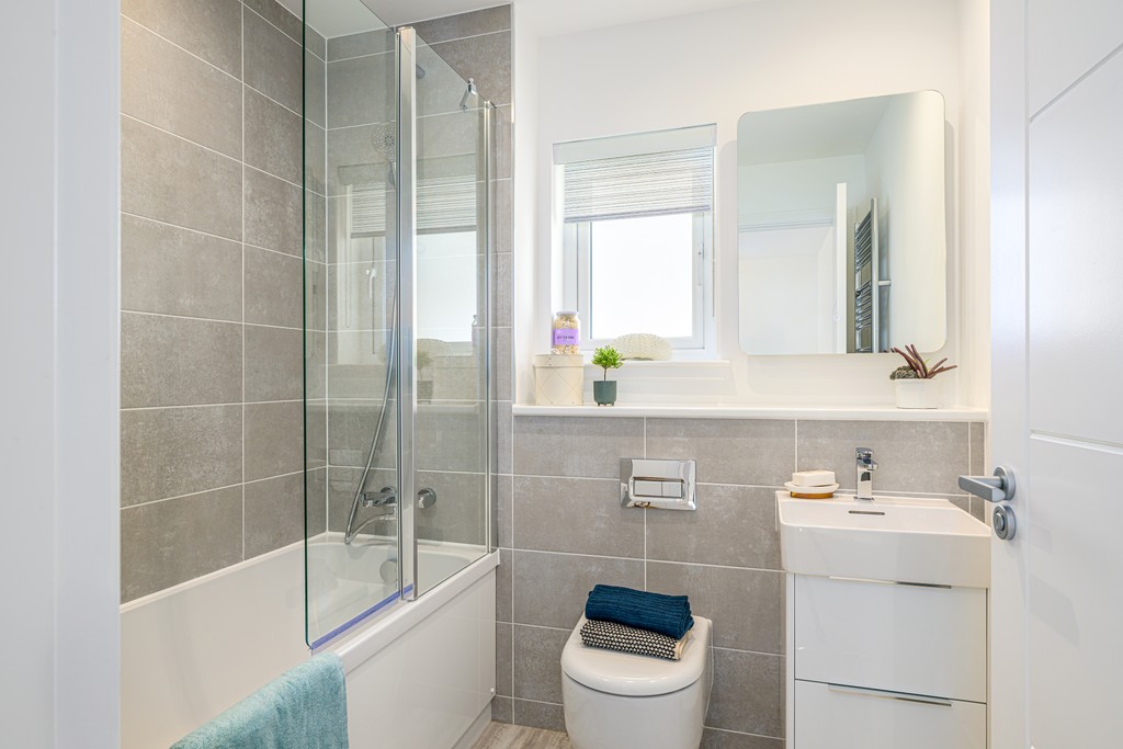 The Allan’s light and airy ambience is complemented with a high specification family bathroom, including Porcenalosa tiling, illuminated mirror with demister pad, and Laufen sanitaryware and vanity unit.