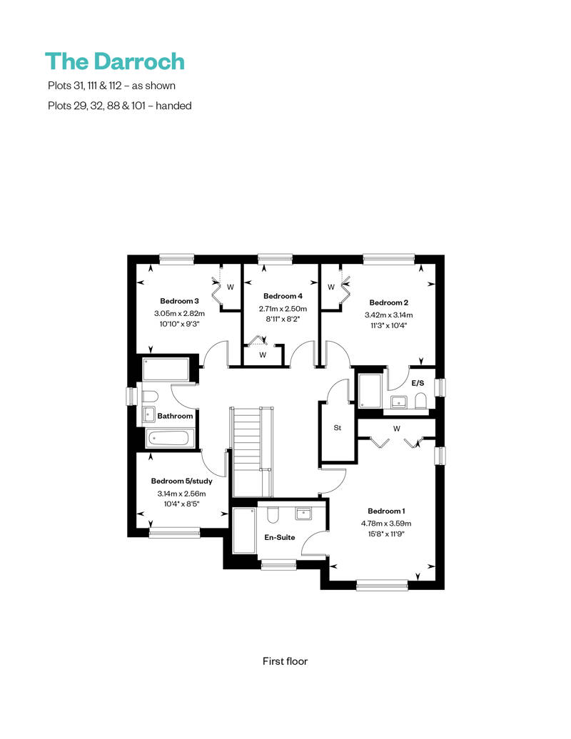 With four double bedrooms, two en suites and a fifth bedroom, which can also be used as a study, The Darroch is the perfect home for families in need of a wealth of space.
