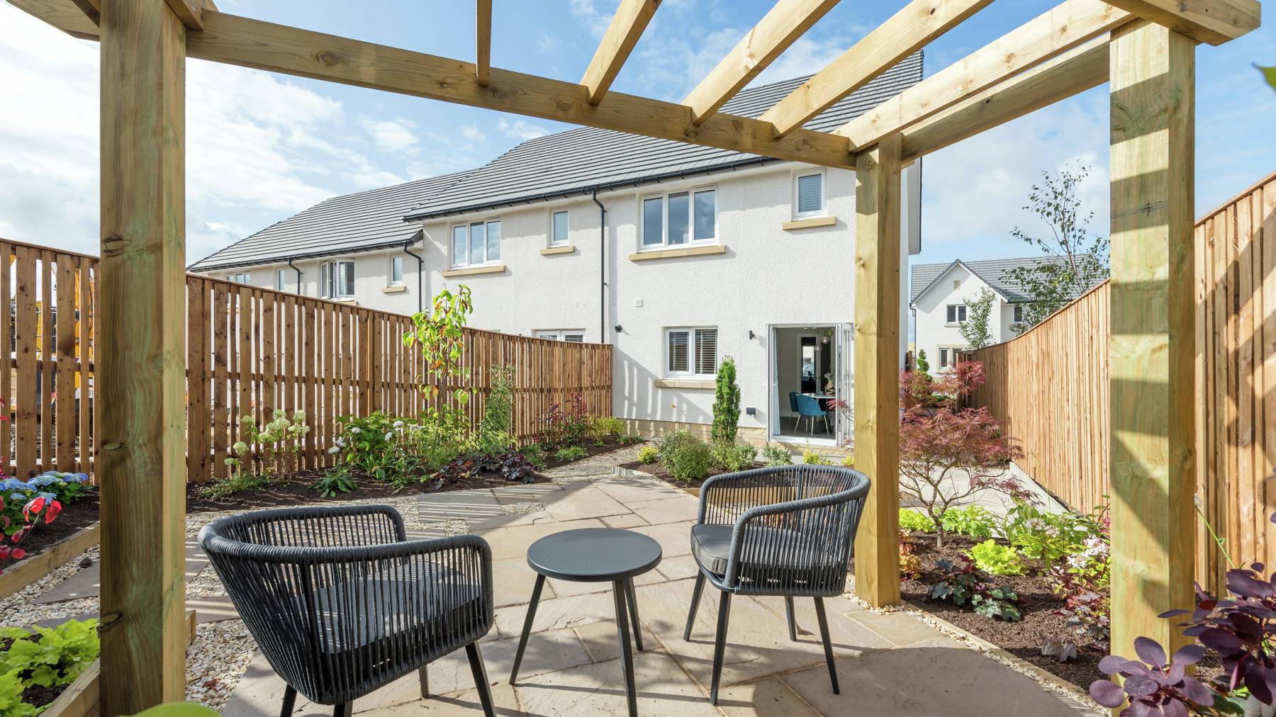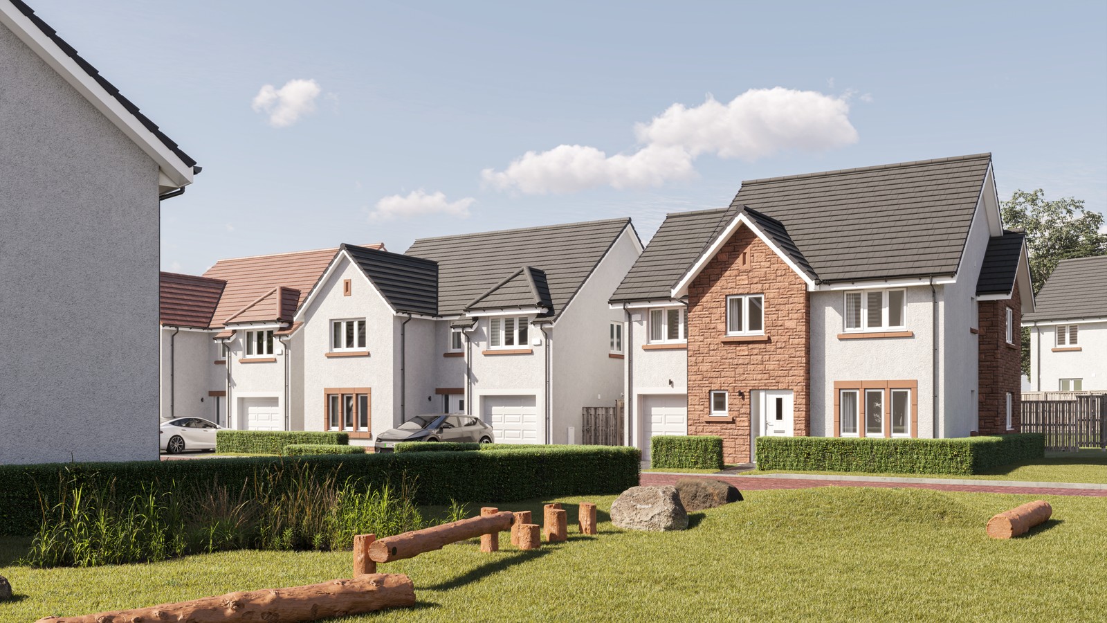 Downstairs you also enjoy a separate (yet interconnecting) lounge, downstairs WC, excellent storage and welcoming vestibule, while on the first floor you’ll be greeted by a spacious upper landing, off which find two double bedrooms and a single (perfect as a home office, nursery or hobby room), all enjoying fitted wardrobes. The Allan’s light and airy ambience is complemented with a high specification family bathroom.