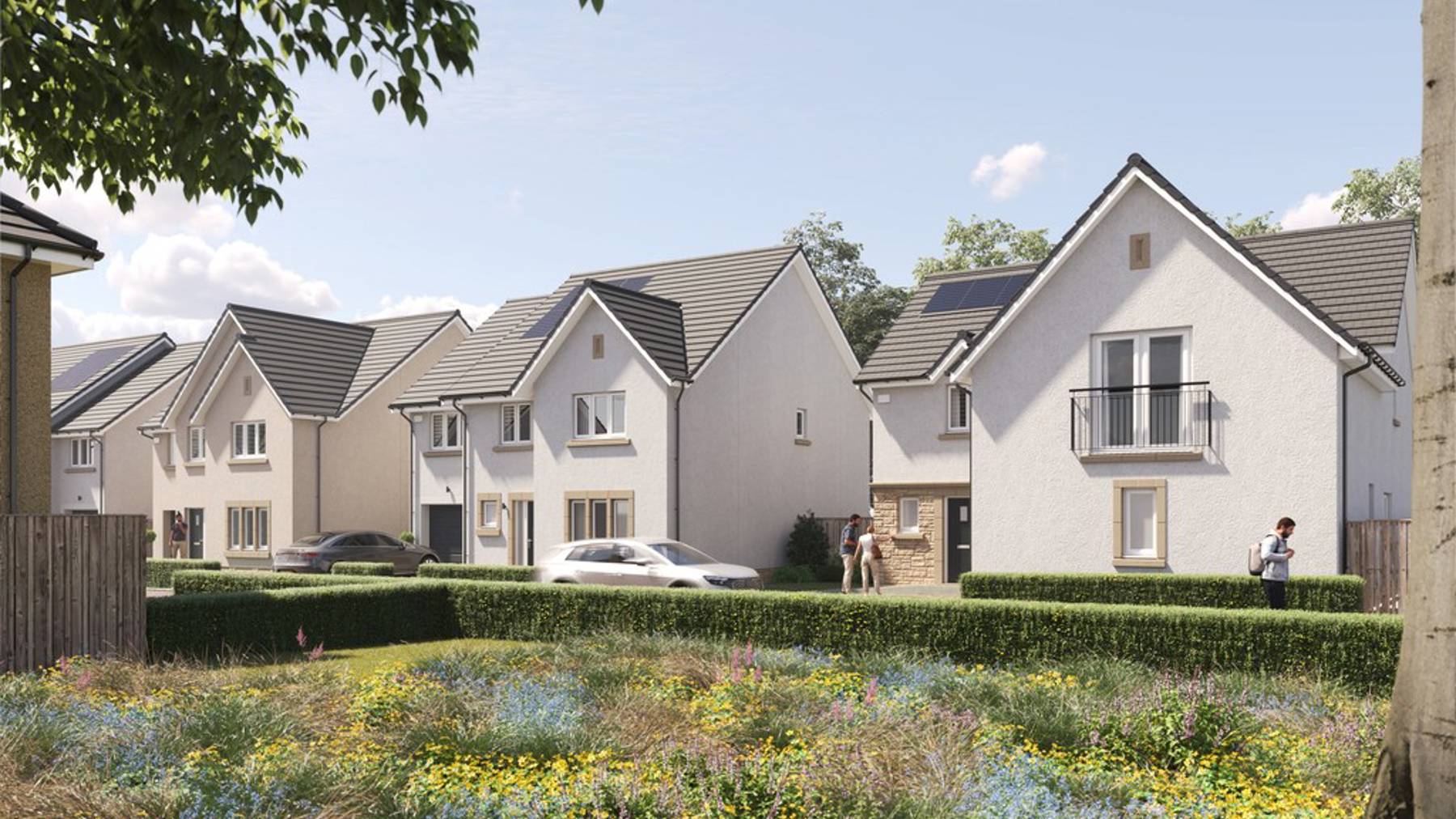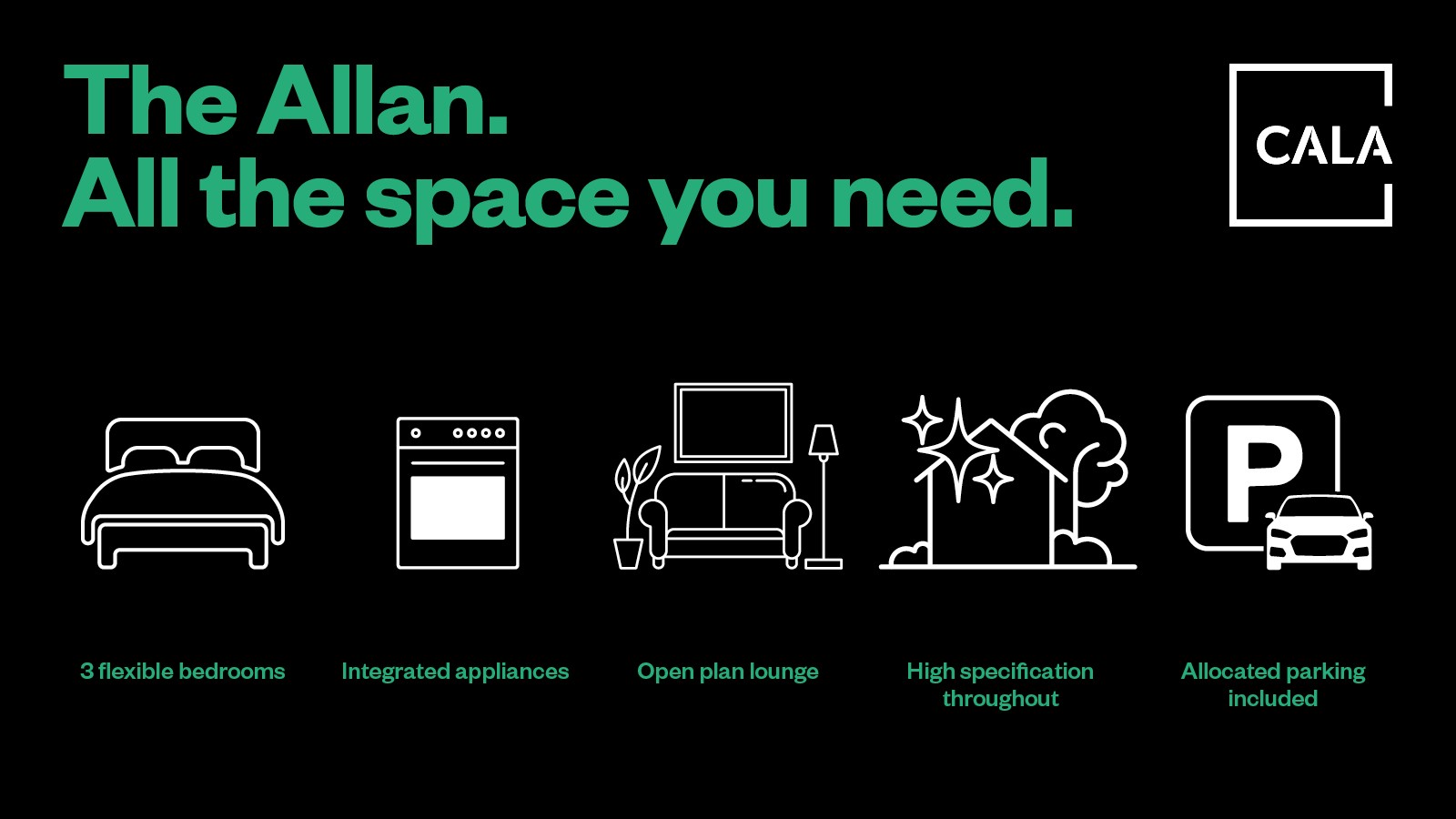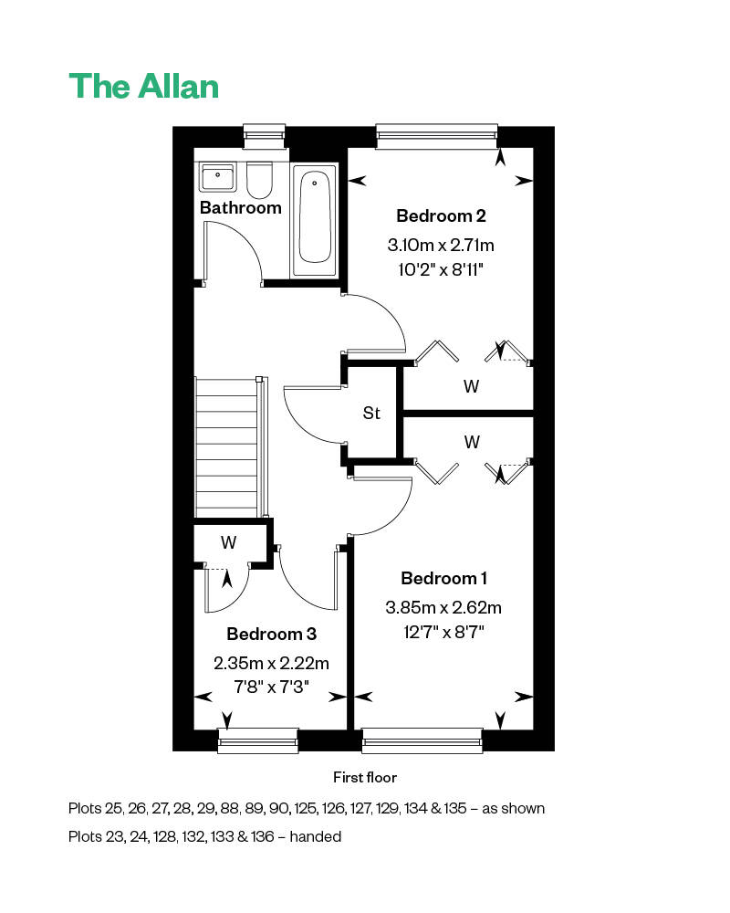 Downstairs you also enjoy a separate (yet interconnecting) lounge, downstairs WC, excellent storage and welcoming vestibule, while on the first floor you’ll be greeted by a spacious upper landing, off which find two double bedrooms and a single (perfect as a home office, nursery or hobby room), all enjoying fitted wardrobes. The Allan’s light and airy ambience is complemented with a high specification family bathroom.
