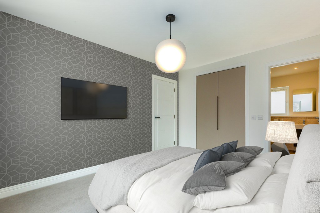 On the first floor, the whole family can have fun deciding who sleeps where. The main bedroom extends from front to rear, enjoying generous proportions while incorporating a highly coveted en suite and walk-in wardrobe. With three further bedrooms, all with fitted wardrobes, perhaps one would work well as a home office, playroom or cinema room - an area that can change as your needs dictate. A stunning family bathroom provides further personal pampering space. From bikes to gardening equipment, an integrated garage allows plenty of extra storage for everyday items.