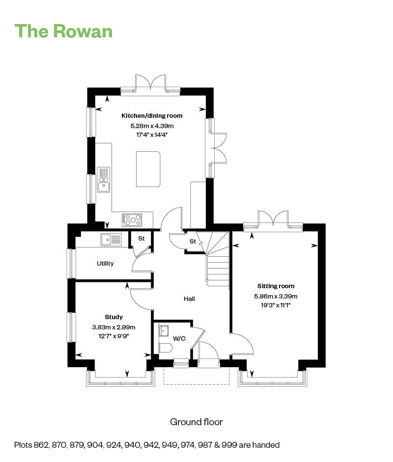 - Substantial triple-aspect kitchen/dining room with French doors opening onto the turfed rear garden