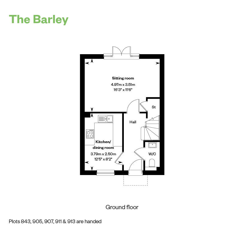 With impressively flexible interiors and a definite sense of style, the 2 bedroom Barley is a highly desirable family home. The airy kitchen/dining room to the front has plenty of space for preparing your favourite dishes and for entertaining guests with integrated appliances included, while at the back, the sitting room runs the width of the home and leads out to the turfed garden through a set of French doors.