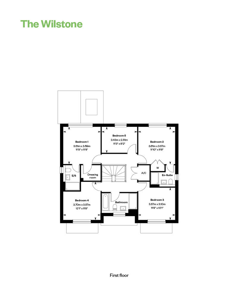 The beautifully appointed 5 bedroom Wilstone provides plenty of space, comfort and versatility for all the family. Standout features include a bay-windowed dining room, dedicated study for home working, and light-filled sitting room with patio doors to the garden. The hub of the home - a generous kitchen / dining / family room - benefits from two sets of bi-fold doors that open into the garden, and a separate utility.