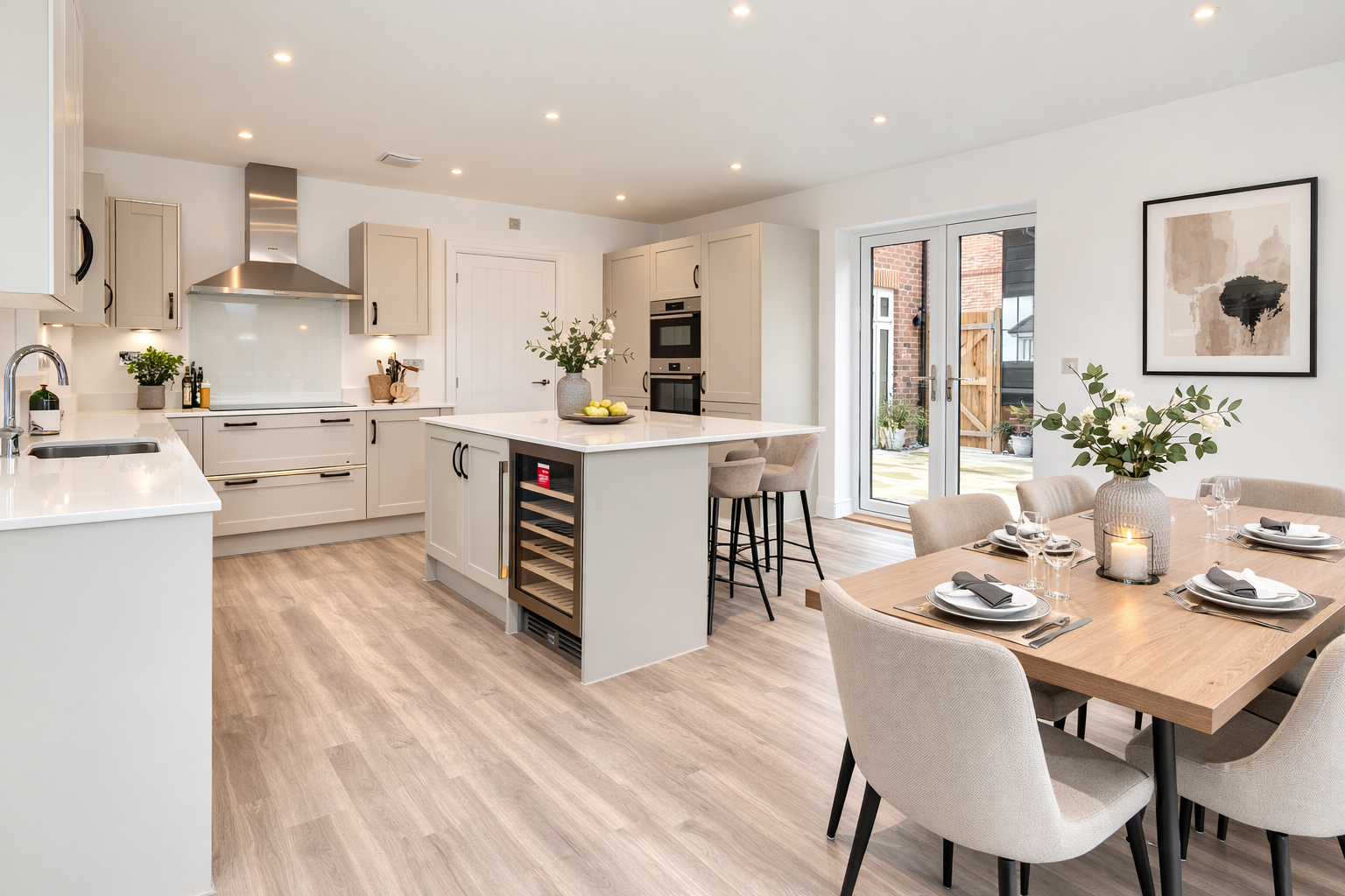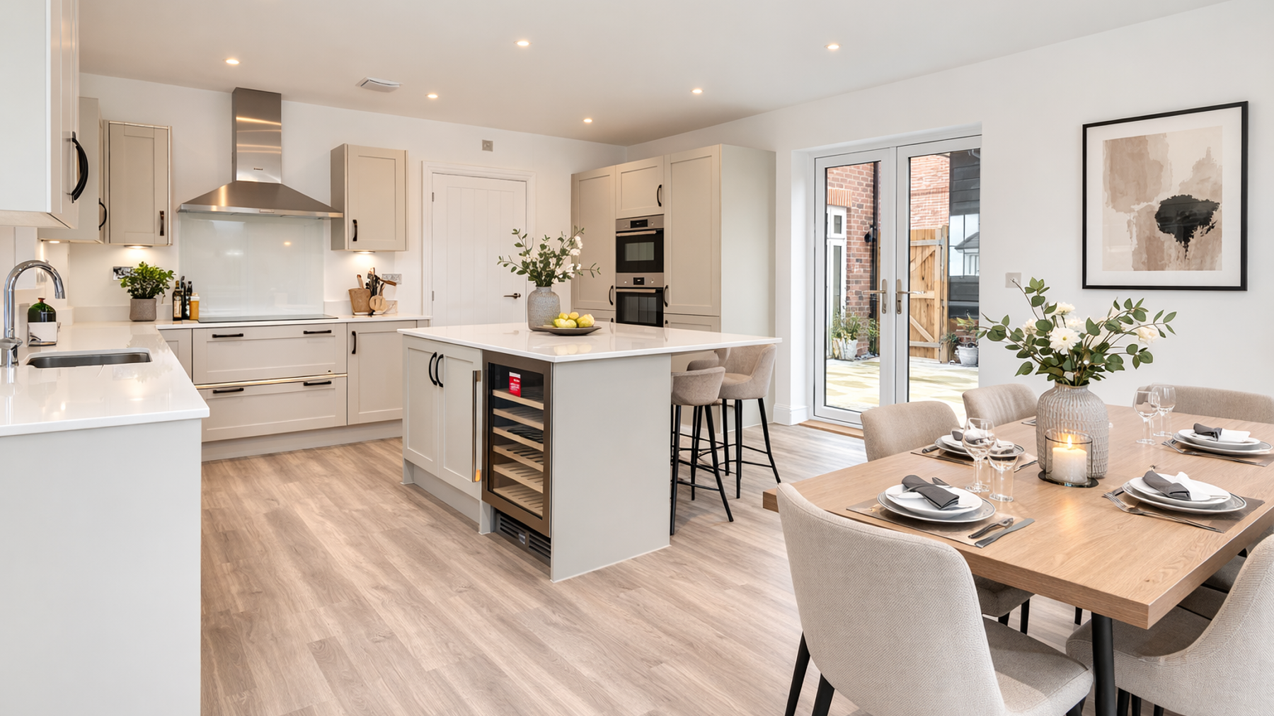 Thoughtful design meets high-spec living in the desirable 4-bedroom Reuben. Highlights include a generous sitting room with a large bay window and patio doors to the garden, a study with a bay window, and a triple-aspect kitchen/dining room with both patio and bi-fold doors opening onto the garden. The kitchen is finished with fully integrated BOSCH appliances, 3-in-1 hot tap, and stone work surfaces, complemented by a utility room for added convenience.
