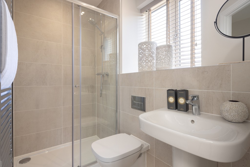 Up on the first floor are four stylish bedrooms and a family bathroom. Bedroom 2 benefits from a fitted wardrobe, and the Primary bedroom offers added luxury with a fitted wardrobe and an en suite with shower.
