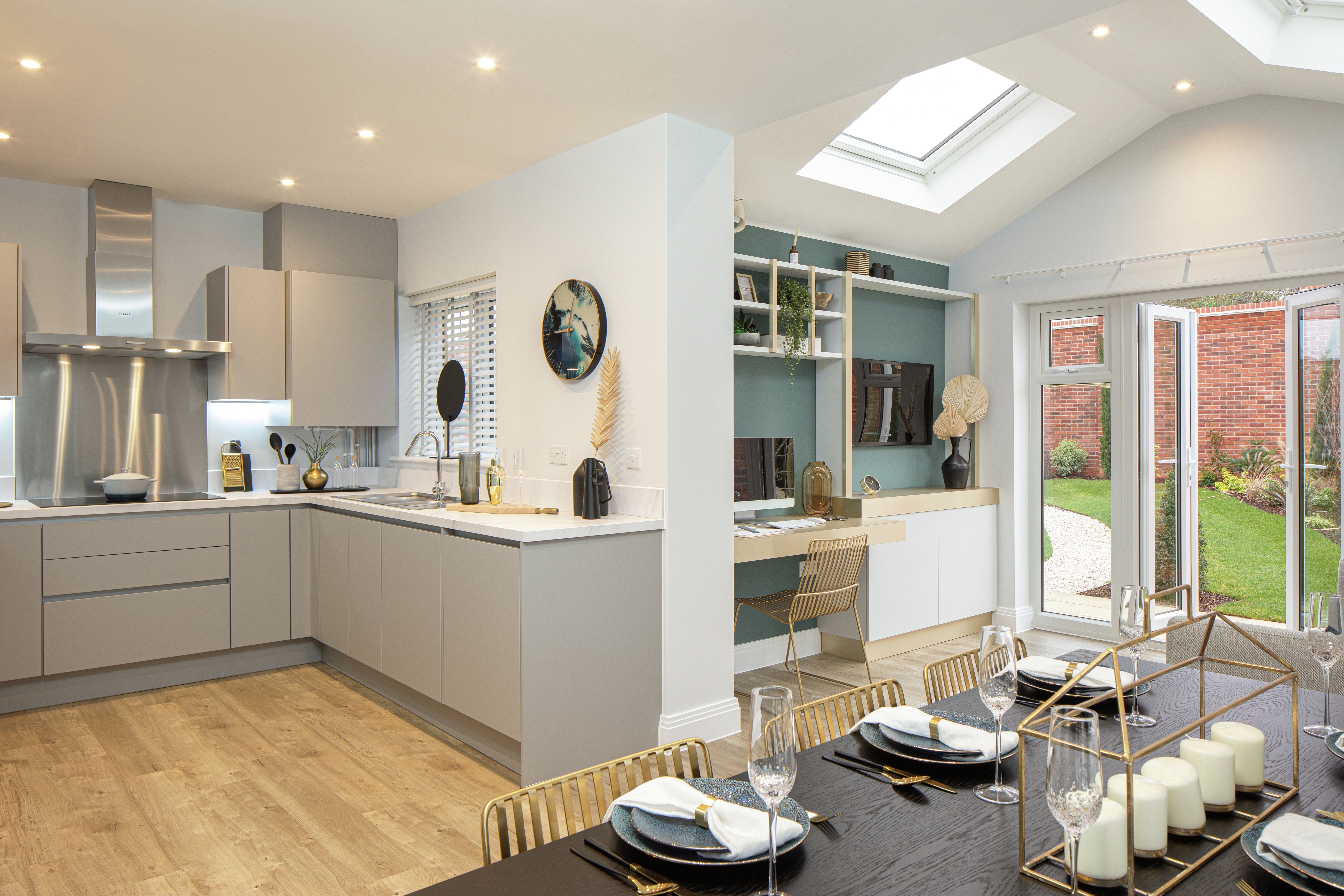 Get every day off to a great start with the open-plan kitchen/dining room. With the latest Bosch appliances, you’ll impress both family and guests. Wander a few steps to the family room. With roof lights and French doors, the area is flooded with light.