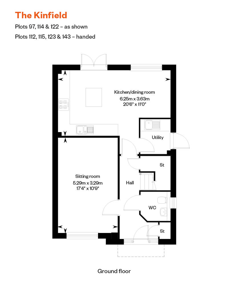 A thoroughly modern family home, The Kinfield is equipped with a spacious kitchen/dining room featuring an island and French doors to the rear patio, as well as the convenience of a separate utility room with access to the garden. Everyone can also get together in the generous comfort of the sitting room.