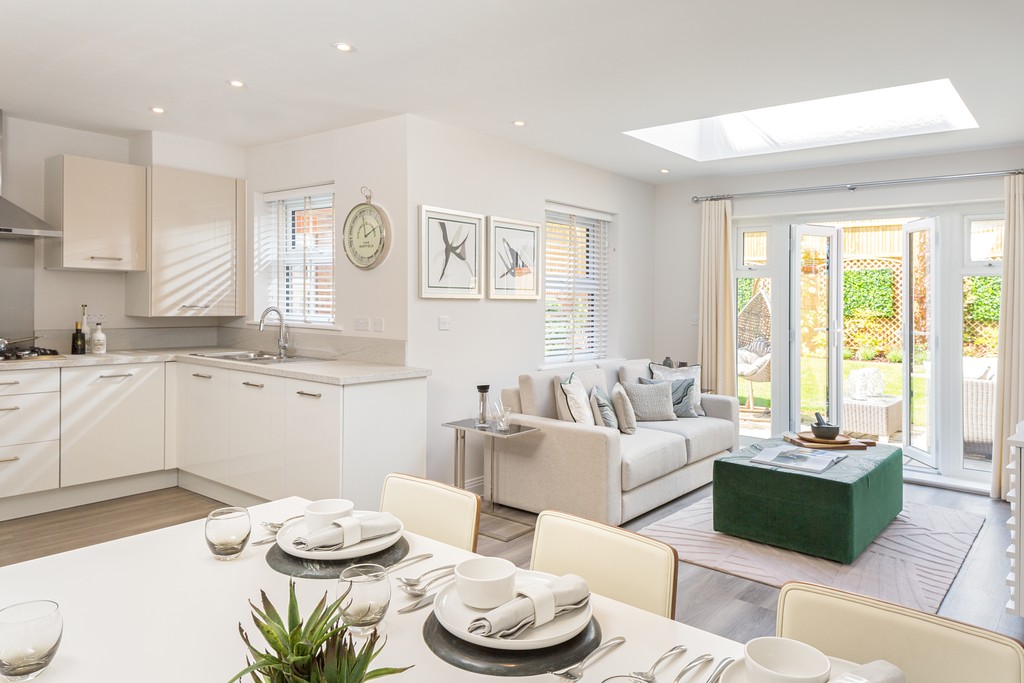 Formal occasion or family time? The Kiswick can satisfy either with ease. To the left of the main hallway, with large bay window, the sitting room exudes elegance. Notice the WC and handy storage space as you walk back across the hallway. The kitchen/dining room, with integrated appliances, will soon become the heart of this home. This space extends further to the family room. With double French doors opening to the garden, this provides the flexibility you need as your family grows.