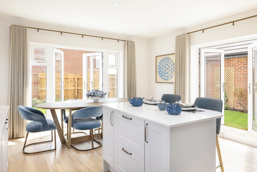 Boasting impressive living spaces, the 4 bedroom Silverbell is a perfect family home, whether it’s the extra-large sitting room, with bay window at the front and French doors leading out to the garden at the back, or the light-filled, dual aspect study/family room. Also on the ground floor is the spacious, triple aspect kitchen/dining room, featuring two sets of French doors opening out to the garden, while the utility room will help keep your living spaces clutter free.