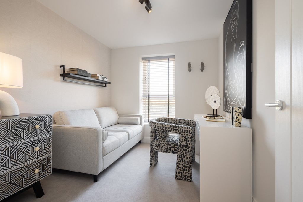 Striking in size, shape and design, The Everglade is a family home to aspire to. Downstairs it’s the expansive sitting room and spacious kitchen/dining/family room that dominates, with both running the length of the home. Extra-large windows in the former also flood the room with natural light, while the latter has a set of French doors leading out to the garden.