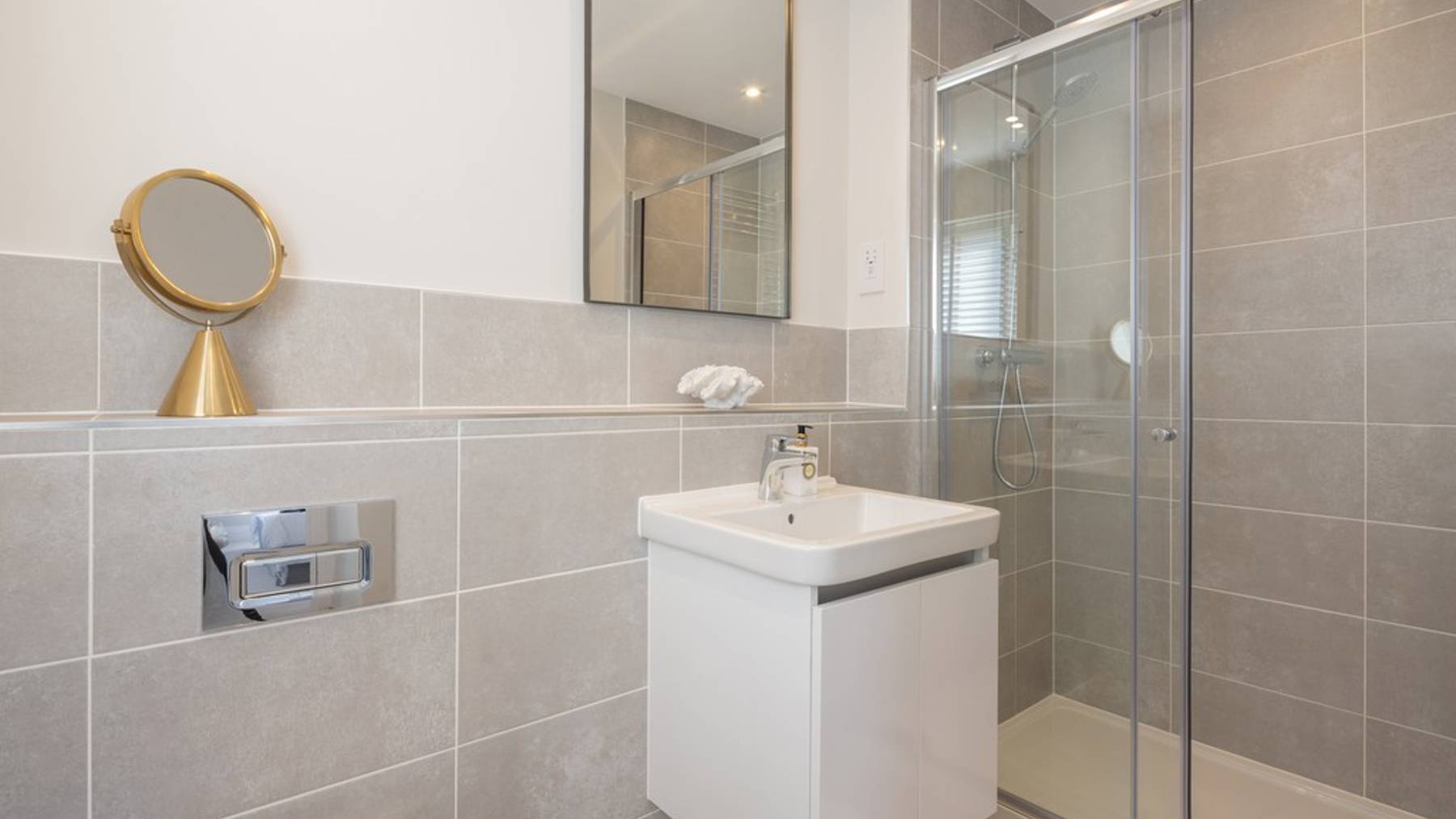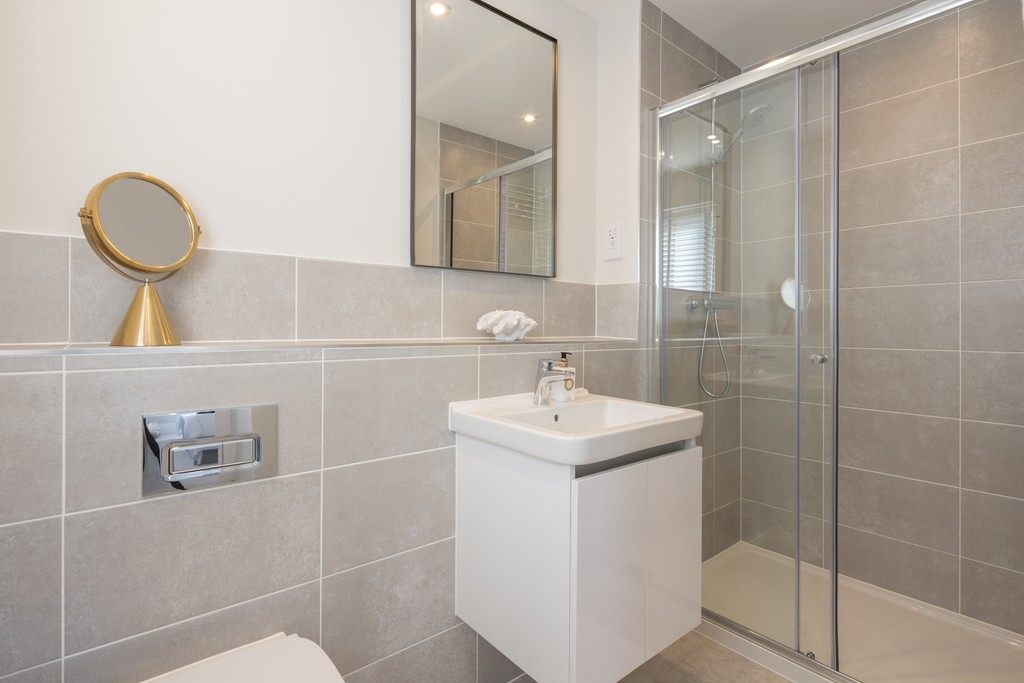 Both bedrooms are well-proportioned, with the primary featuring an en suite bathroom as well as a built-in wardrobe, while the second bedroom is complimented by an en suite shower room. Benefiting from two car parking spaces.