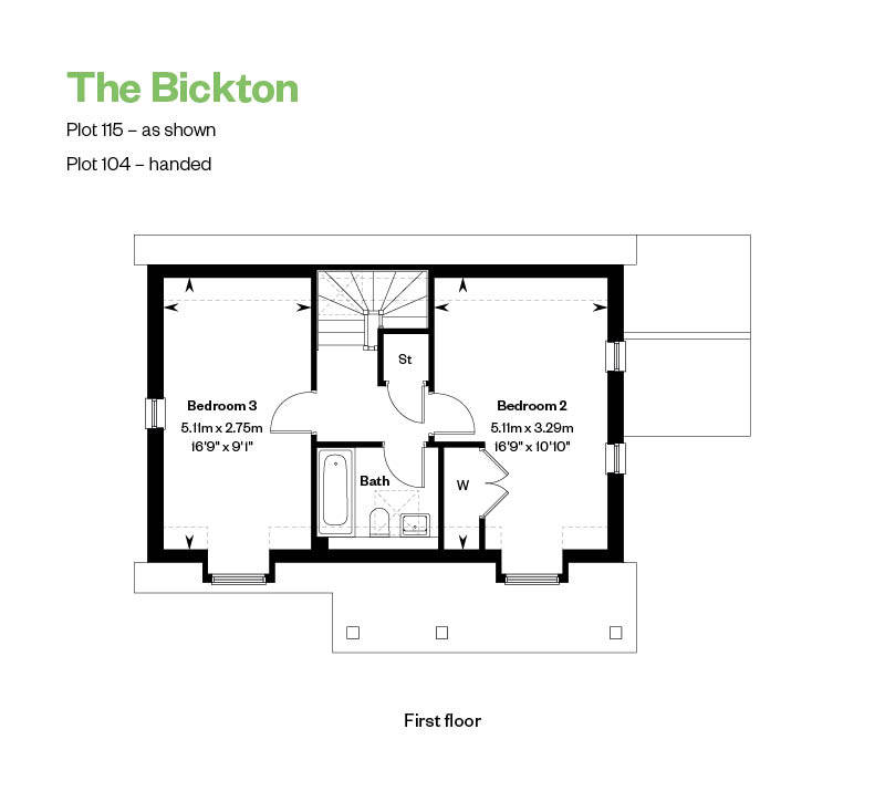 On the first floor, generous, dual aspect Bedrooms 2 & 3 are located on either side of a shared family bathroom.