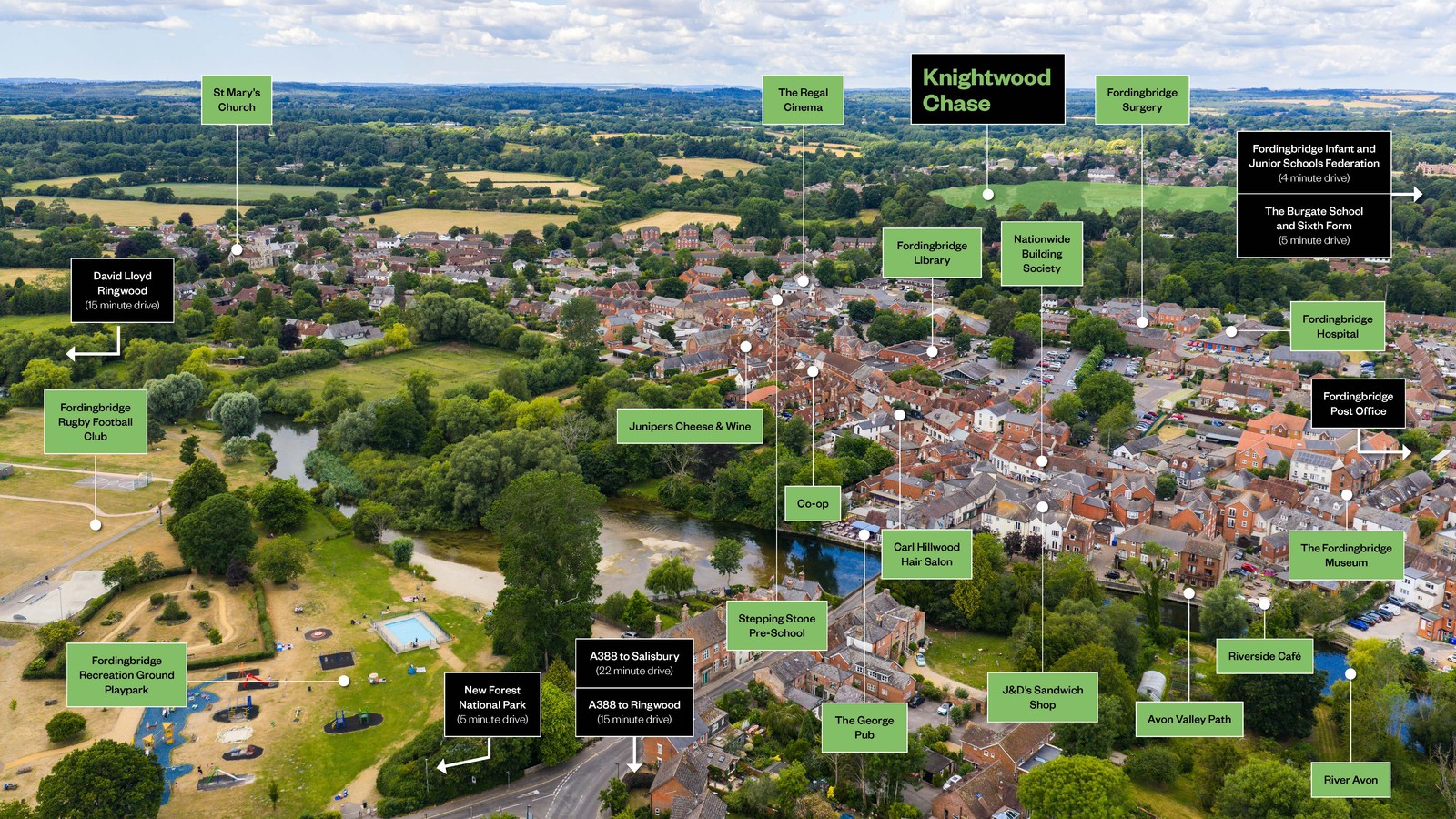 The David Lloyd club is a 15 minute drive from the development and has indoor and outdoor swimming pools, a gym, sauna and cycling area, plus a kid’s club and creche. Want to splash around? The New Forest Water Park is just 6 minutes drive away, or the Insight Activities centre is a 5 minute drive and where you can try your hand at archery or axe throwing.