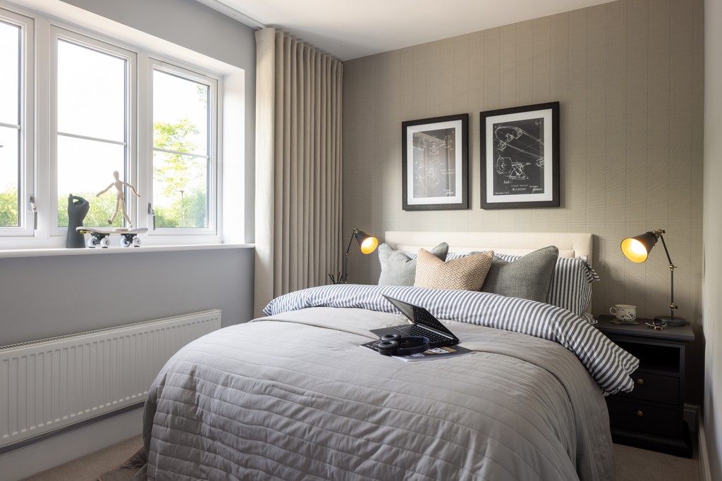 The highly versatile 4 bedroom Rowan uses space to excellent effect, making the most of every square foot available. The large sitting room has a bay window at the front and a set of French doors leading out to the fully-lawned garden at the back, flooding the room with light. The open-plan kitchen/dining room boasts integrated Bosch appliances and also leads out to the garden through French doors, while the handy utility room will help to keep your laundry away from your living spaces. The family room/study at the front also has excellent potential, whether it’s used as a playroom or home office.