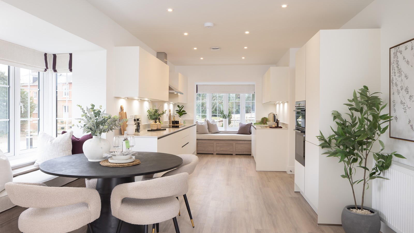 On the first floor are four generous bedrooms, with the primary bedroom benefitting from a fitted wardrobe and an en-suite with Roca sanitaryware. The three other bedrooms are served by a family bathroom, located opposite the stairs.