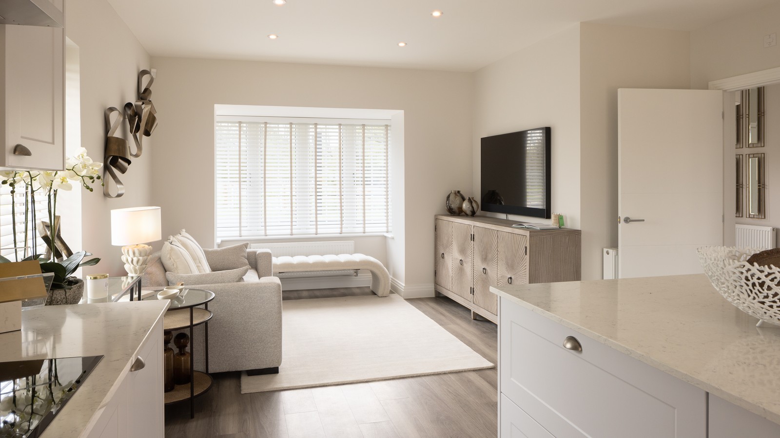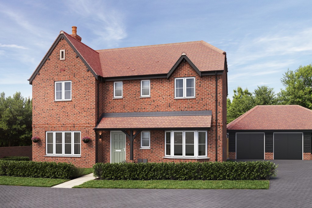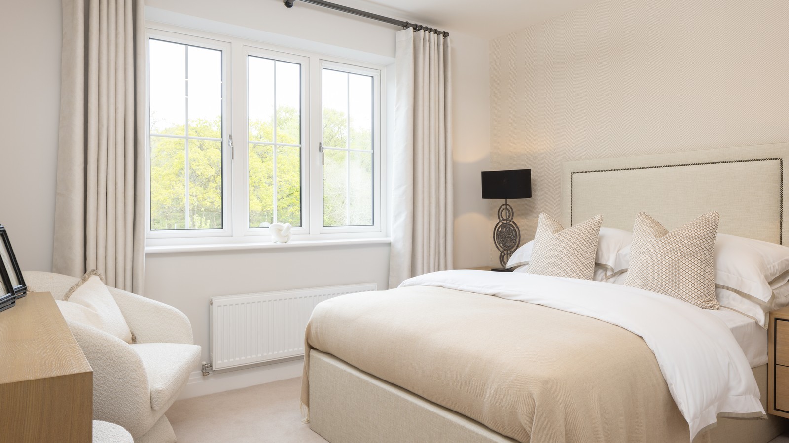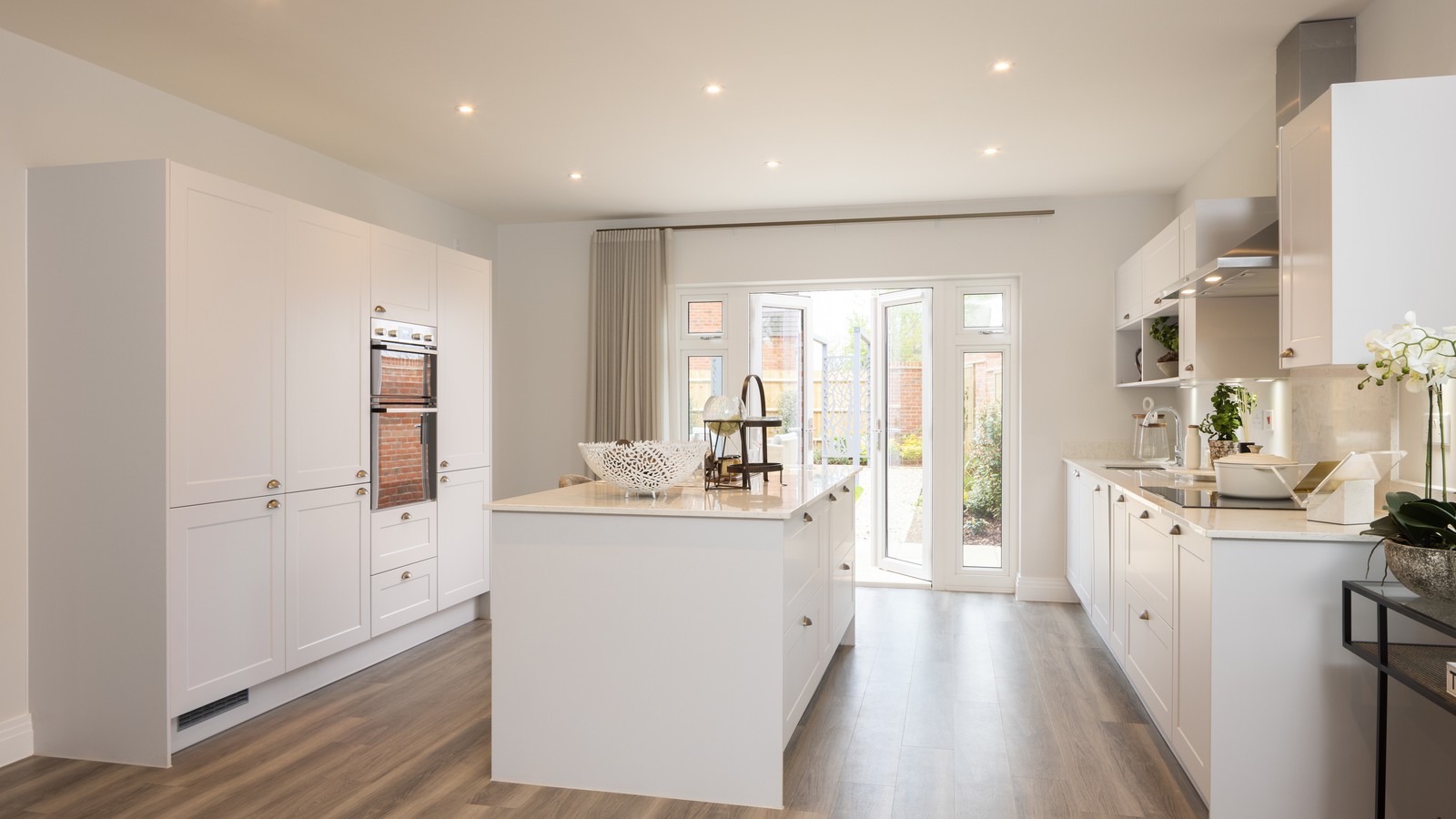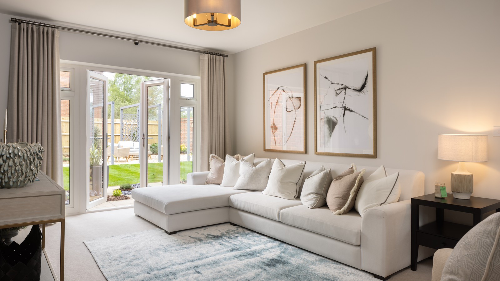 As high specification family homes go, the stylish and well-proportioned Walnut takes some beating. The giant kitchen/family room is perhaps the most impressive of the downstairs interiors, featuring a bay window at the front and French doors leading out to the garden at the rear, letting in plenty of natural light. High quality integrated appliances are also included as standard. The sitting room, also with French doors opening out to the fully-lawned garden, and separate dining room are of a good size, while the utility room provides added convenience.