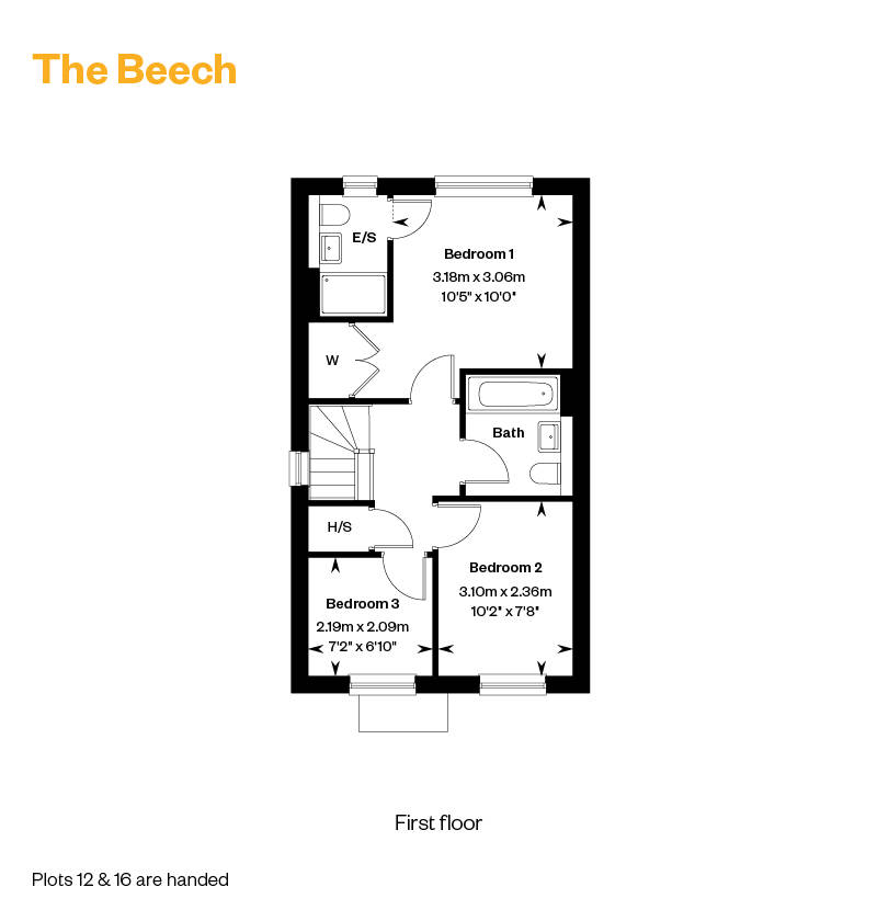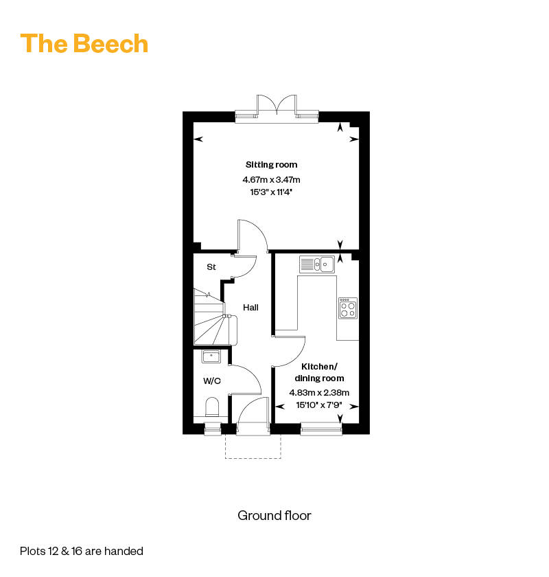 The Beech is a well designed three bedroom home offering a practical layout across two floors. The ground floor features a spacious sitting room with French doors opening to the garden, a bright kitchen dining room, a central hall with storage and a convenient WC. Upstairs, the home provides three bedrooms, including a generous main bedroom with its own en suite and built in wardrobe. A modern family bathroom serves the remaining two bedrooms, while additional storage is neatly incorporated into the landing area. This thoughtful layout offers comfortable and efficient living throughout.