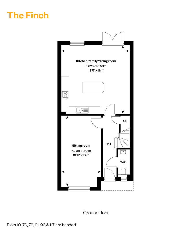 The Finch is a stylish three bedroom home with a smart, contemporary layout. The ground floor features a spacious open plan kitchen, family, and dining room with French doors leading outside, alongside a separate sitting room and a handy WC off the hall. Upstairs, the home offers three bedrooms, including a generous main bedroom with an en suite and built in wardrobe. A modern family bathroom and additional storage complete the floor, creating a practical and comfortable space ideal for everyday living.