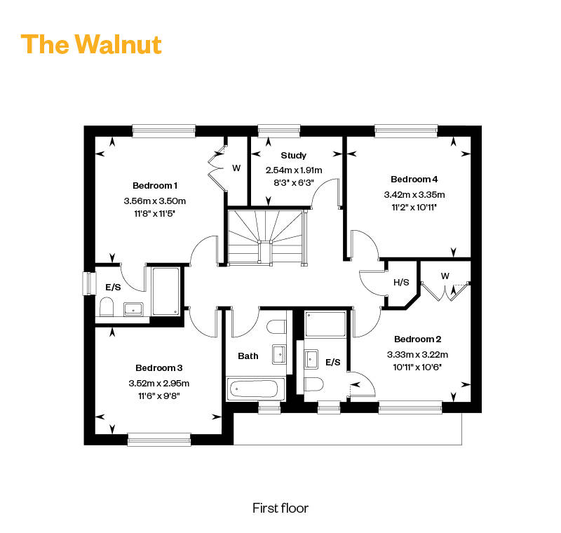 Upstairs, four well proportioned bedrooms provide plenty of room for family or guests. The main bedroom includes its own en suite, while a study offers valuable flexibility for home working. A modern family bathroom and additional storage ensure comfort throughout, making The Walnut a wonderfully balanced and versatile home.