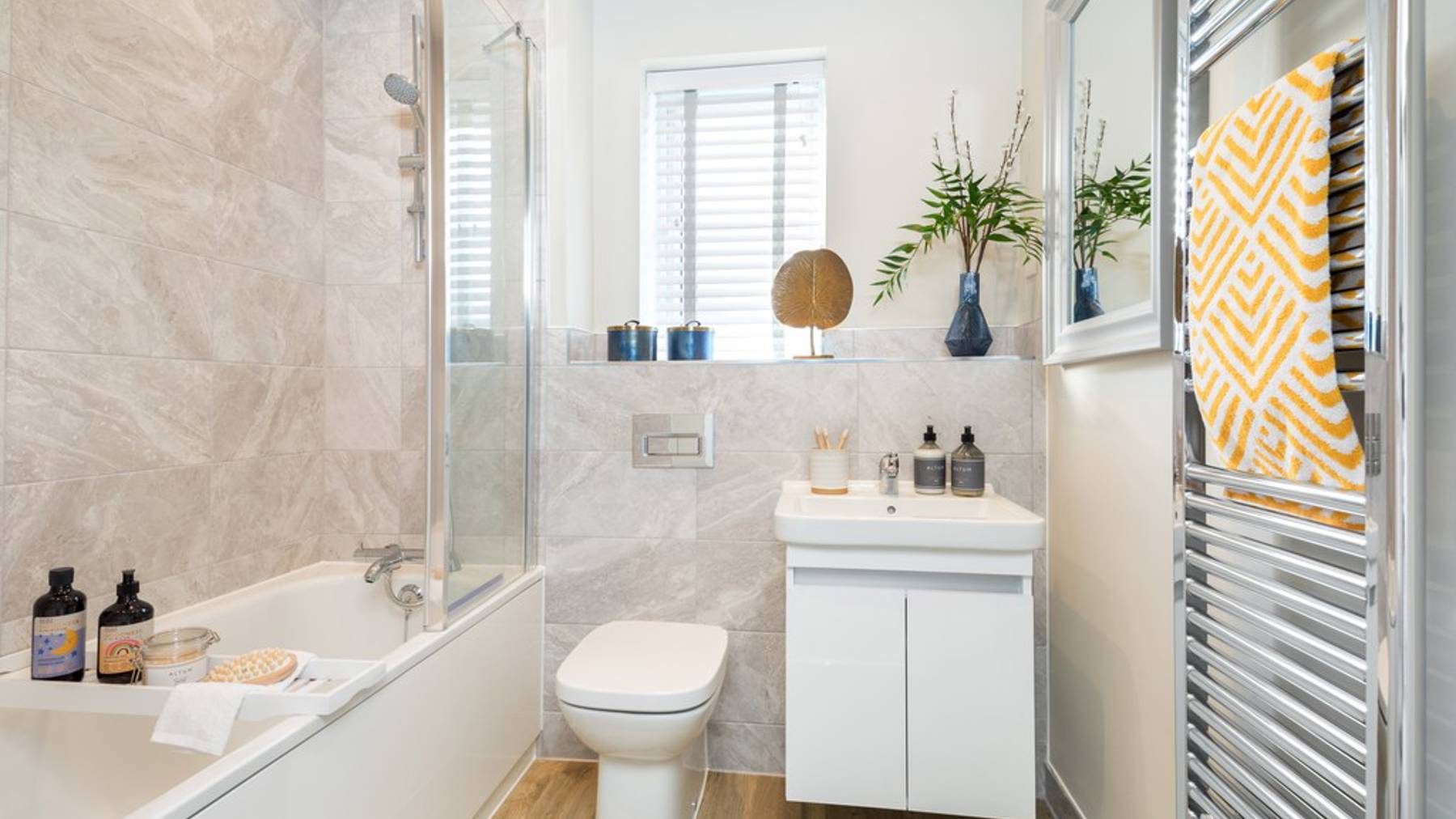 Photography may have been enhanced in post-production and may include upgrades at additional cost. Computer Generated Images may show features fittings, décor, flooring and soft furnishings which are not fitted as standard in a Cala home. CGIs are used to suggest possible finishes that can be achieved in your home at an additional cost. These photos may be taken from previous Cala showhomes and may be different from the same house type at this development. Please speak with your Sales Representative to find out more about the specification, layout and any further details.
