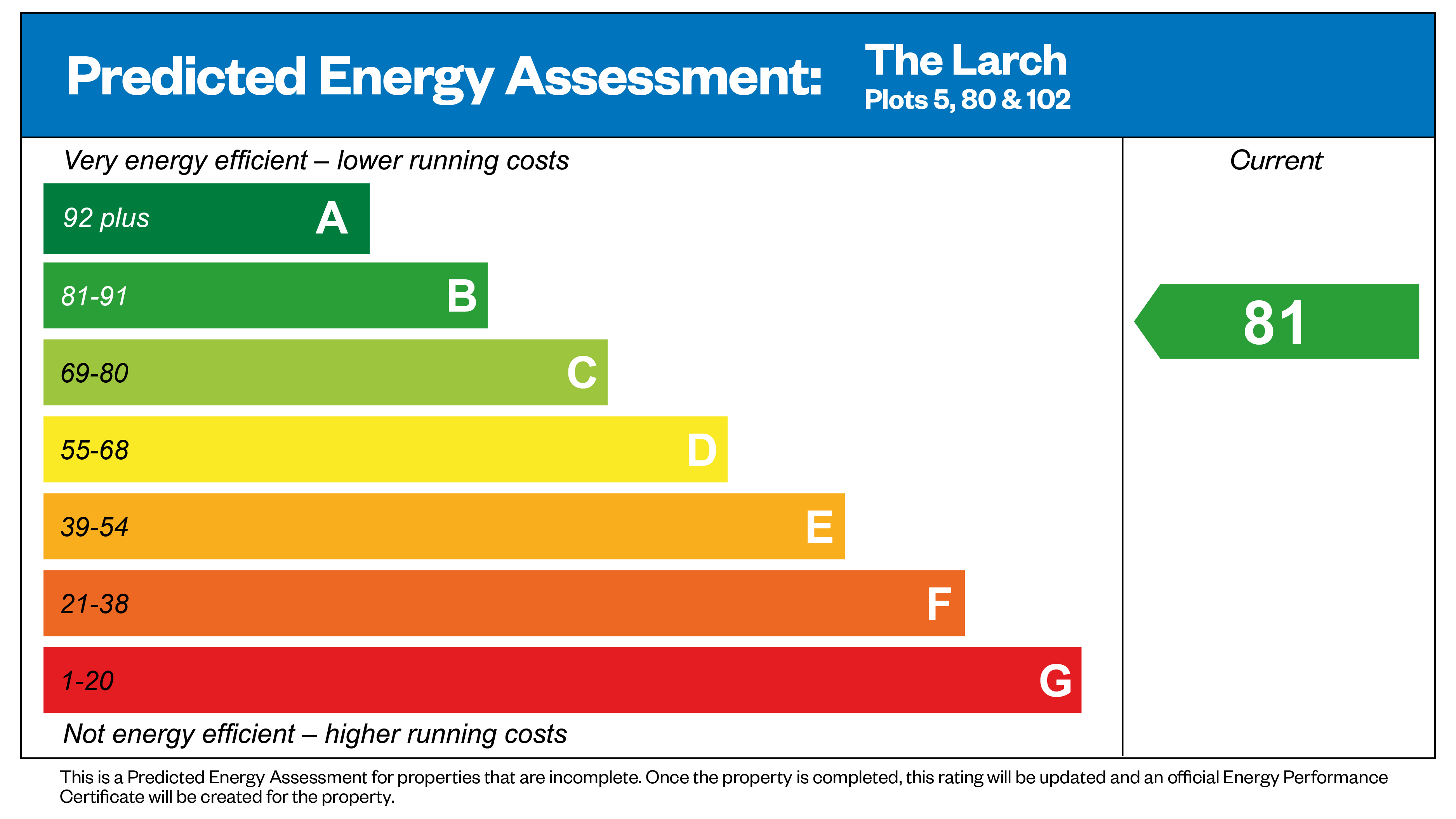 The Larch’s kitchen/dining room provides the ideal ‘hub’ to your home, open the double glass doors and wander through to your private, turfed rear garden with a generous patio. A separate utility is the perfect space to escape to when you need some quiet time for chores. Whilst the dedicated study lends itself nicely to accommodating a work from home space.