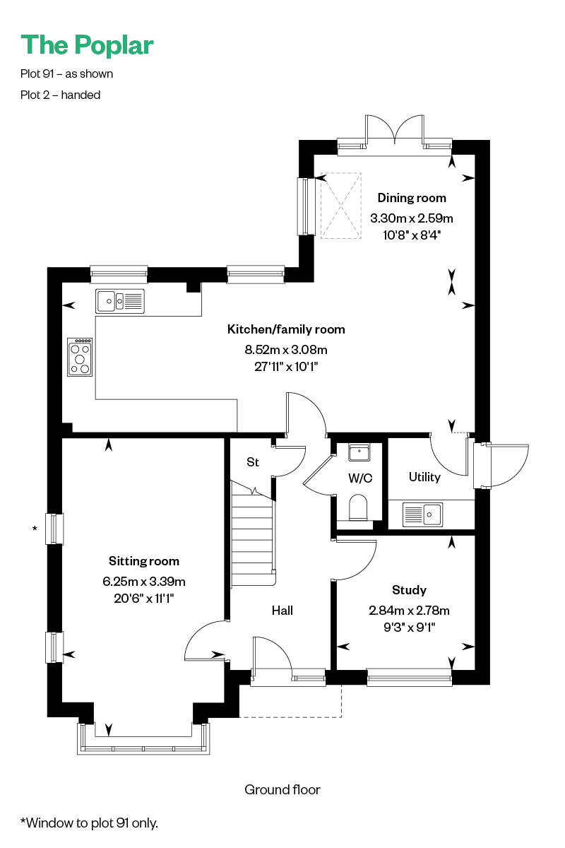 The Poplar is ideal for contemporary living on the grand scale, with a spacious sitting room for entertaining or relaxation and a large full-width, fully fitted kitchen diner that’s also a family room. It’s the heart of the home, where you can cook, eat, spend quality time together, and in the summer, fling open the patio doors and extend into the garden. There’s a cloakroom, utility room and study, den or playroom too.