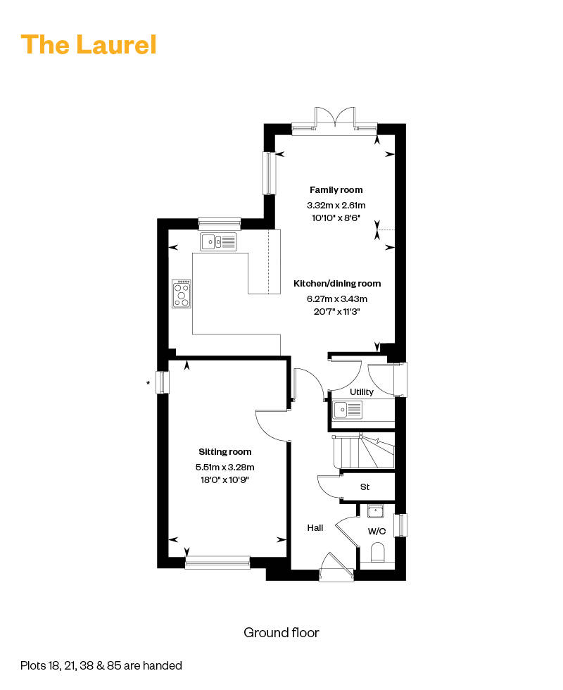 The Laurel’s elegant exterior sets the tone for this beautiful detached home. A spacious hallway leads into a bright, open‑plan kitchen/dining/family room, with a seperate utility room. Stylish french doors open onto a patio and turfed rear garden, while a separate sitting room offers a peaceful space to relax.