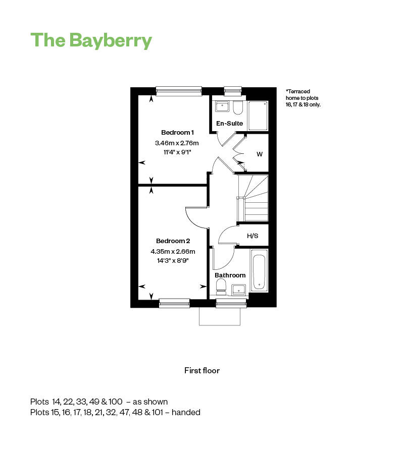 The Bayberry enjoys an elegant and contemporary layout. The hallway leads directly into the generous sitting room, ensuring that you and your guests immediately feel at home. Whether enjoying family time or entertaining, you are only ever steps away from the wc and kitchen. The combined kitchen/dining room makes light work of mealtimes. Enjoy a breath of fresh air opening the elegant patio doors to your own private garden, while a store cupboard keeps mess to a minimum. Two generous bedrooms are found on the upper floor. Take a look at the main bedroom. There are fitted wardrobes and an en suite. A beautifully appointed bathroom completes this level.