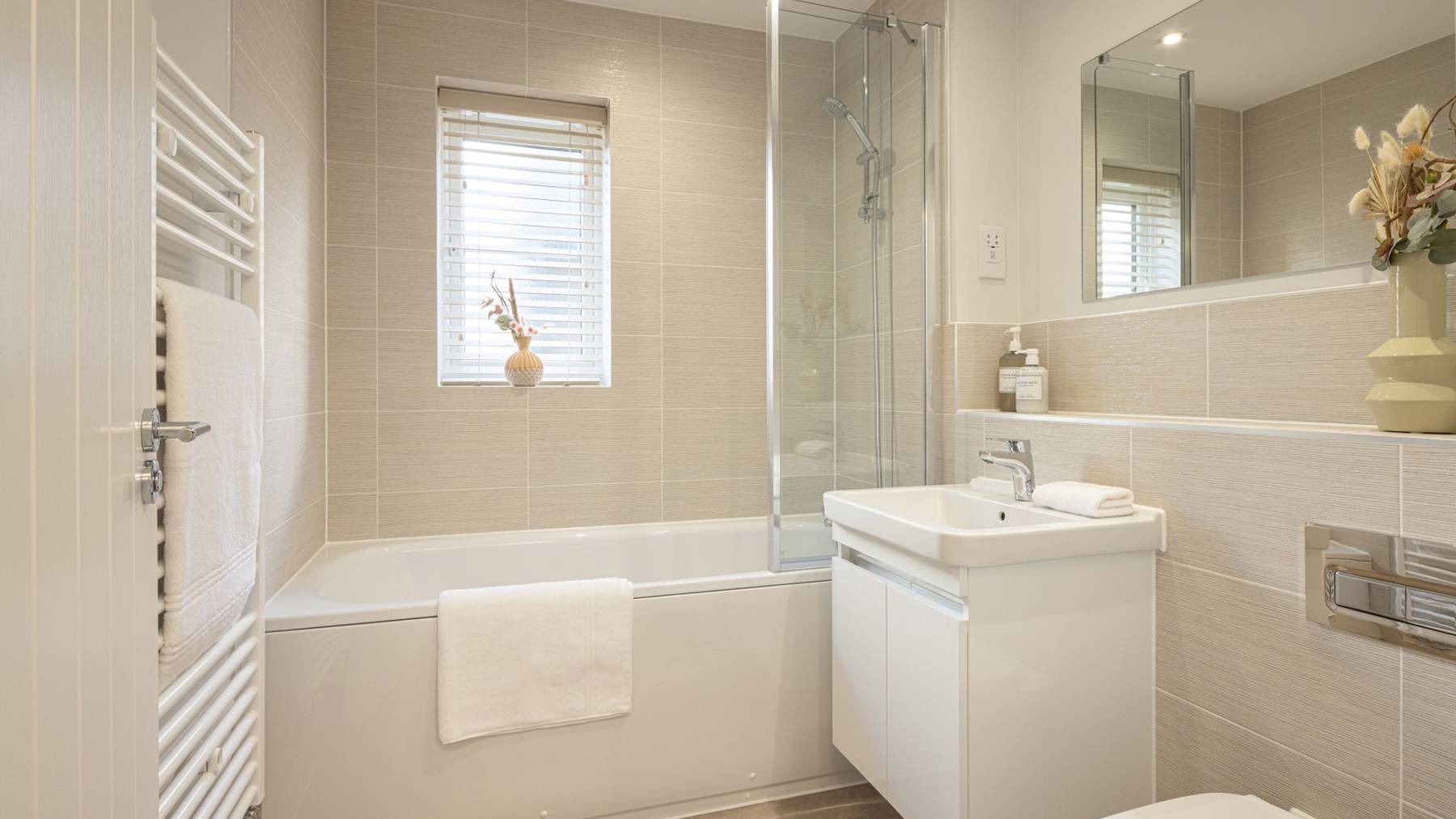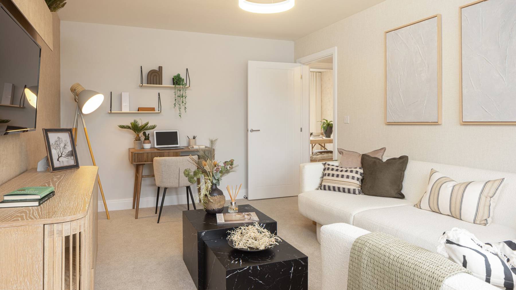 Photography may have been enhanced in post-production and may include upgrades at additional cost. Computer Generated Images may show features fittings, décor, flooring and soft furnishings which are not fitted as standard in a Cala home. CGIs are used to suggest possible finishes that can be achieved in your home at an additional cost. These photos may be taken from previous Cala showhomes and may be different from the same house type at Himley Village. Please speak with your Sales Representative to find out more about the specification, layout and any further details.