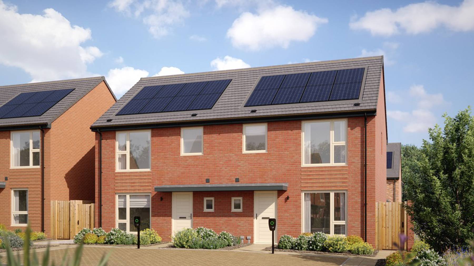 What sets us apart from the competition is our carefully considered, spacious designs with exceptional quality specifications, including integrated appliances, amtico flooring, fitted wardrobes, ample storage, solar PV panels, air source heat pumps, electric vehicle chargers, and turfed rear gardens.