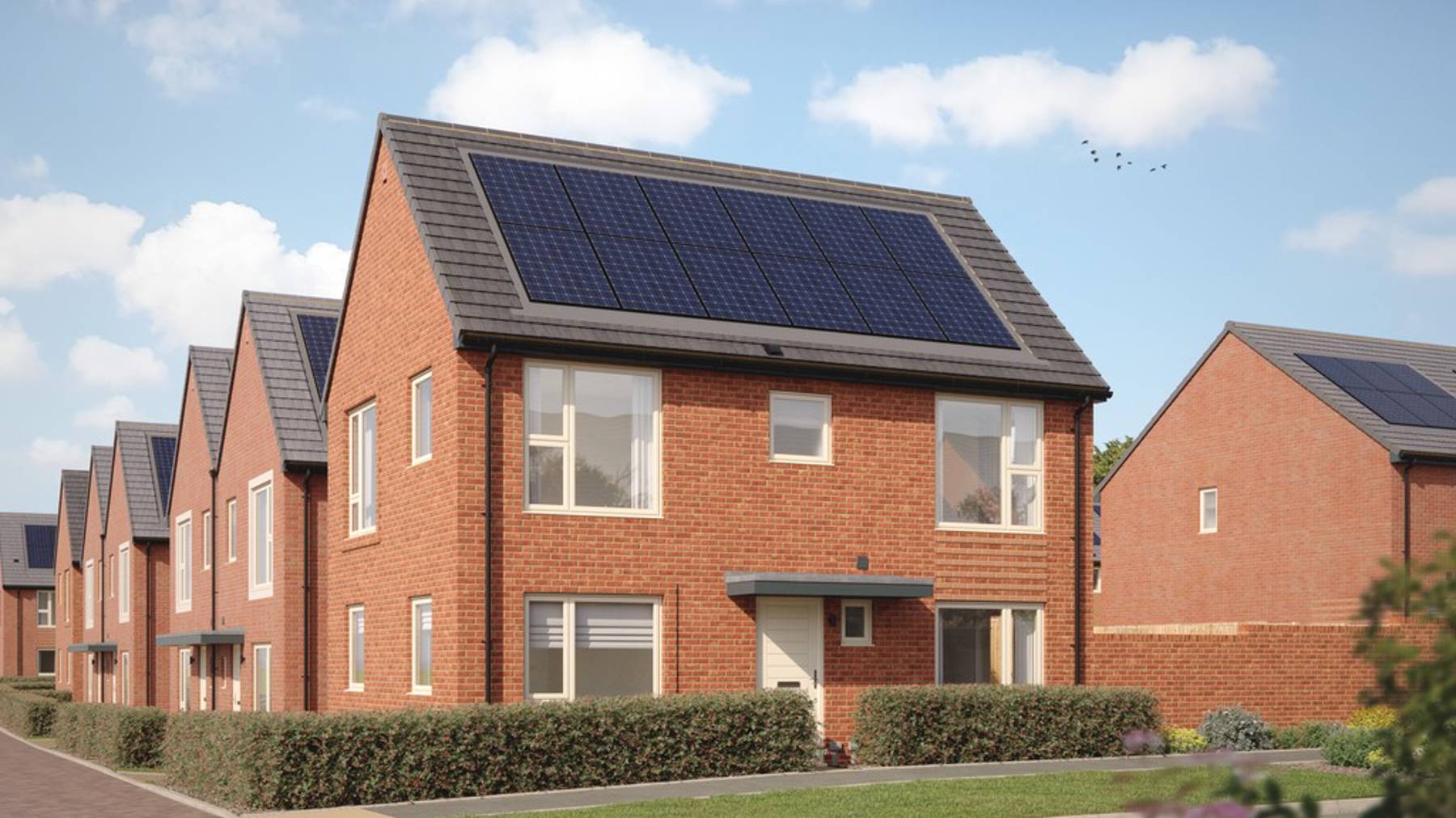 The style, space and modern look and feel continue upstairs, with dual-aspect, front-facing Bedroom 1 benefiting from the comfort of an en-suite and a fitted wardrobe. On the other side of the landing, with its handy storage cupboard, Bedrooms 2 and 3 are also of a good size and share a separate bathroom with fitted wardrobes to the second bedroom. Plus, you could be looking at lower energy bills thanks to PV panels and an EV charging point fitted as standard.