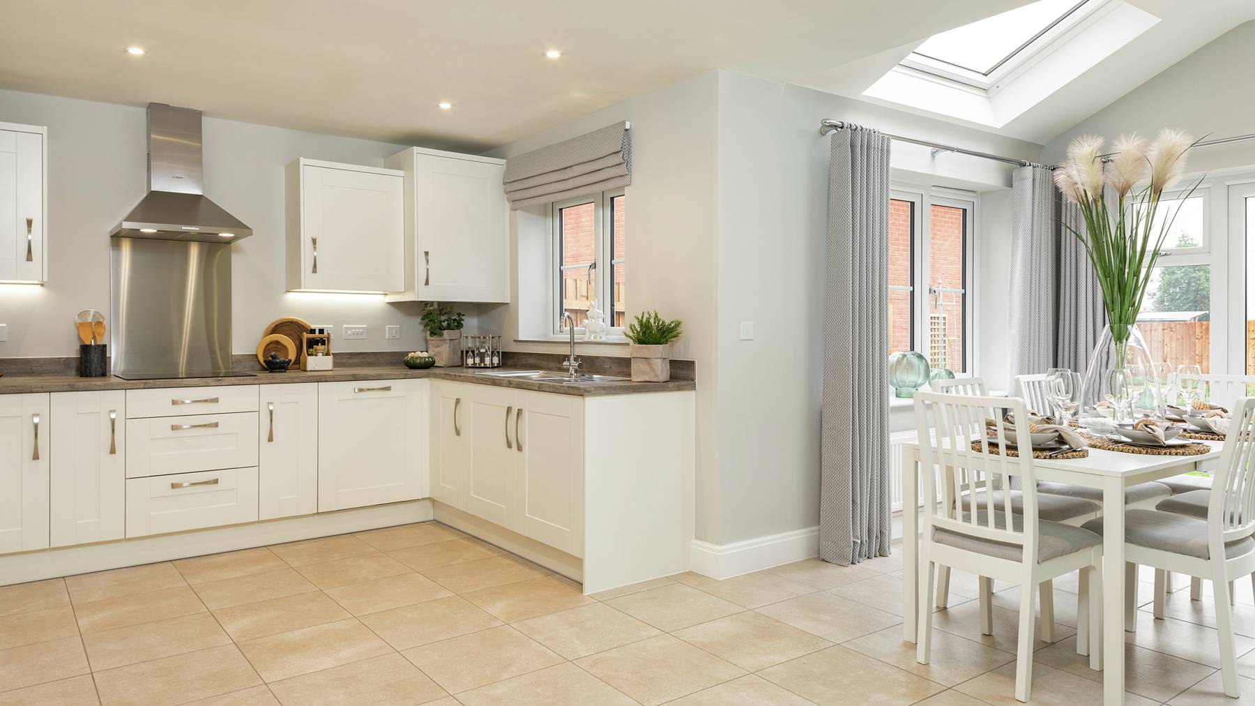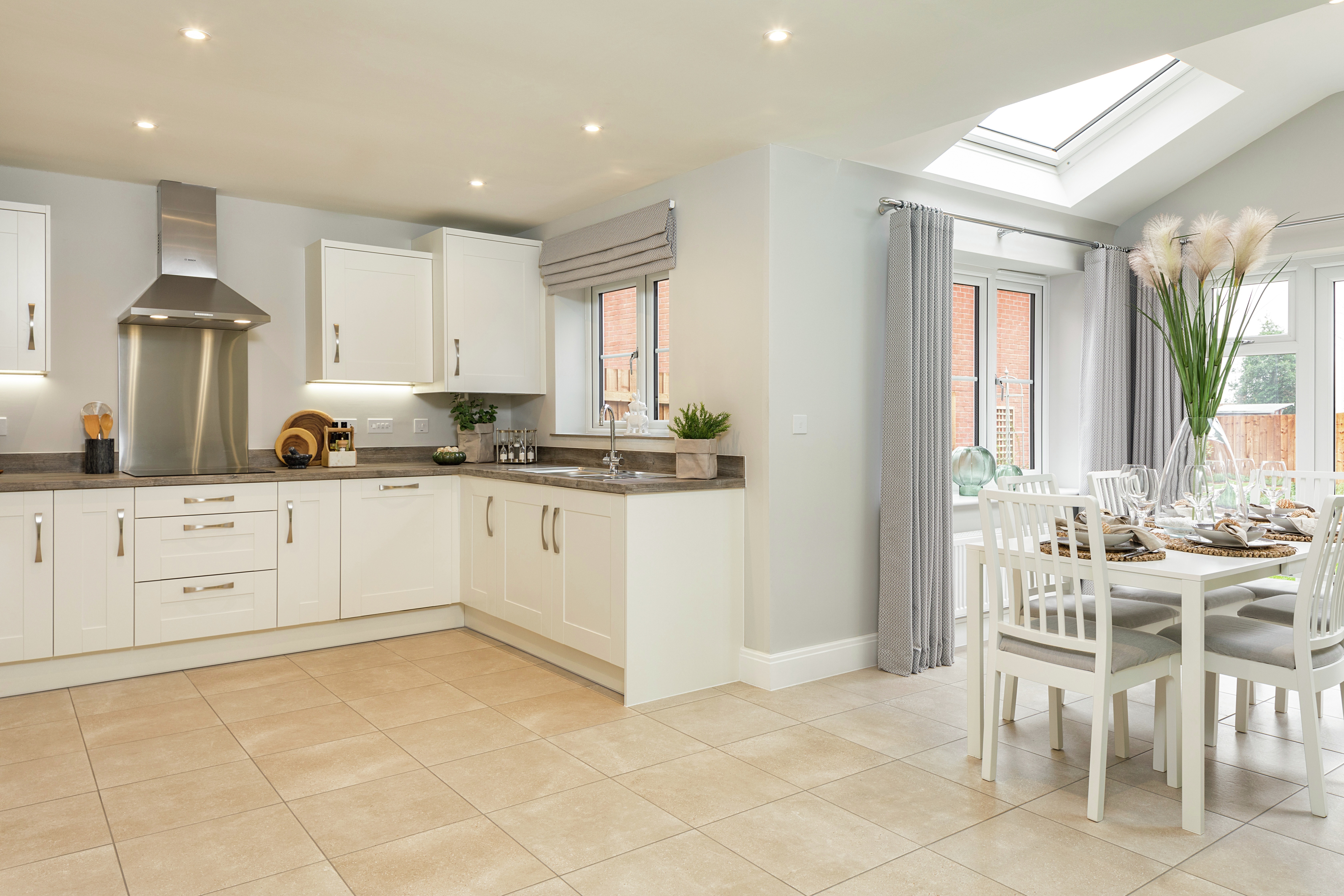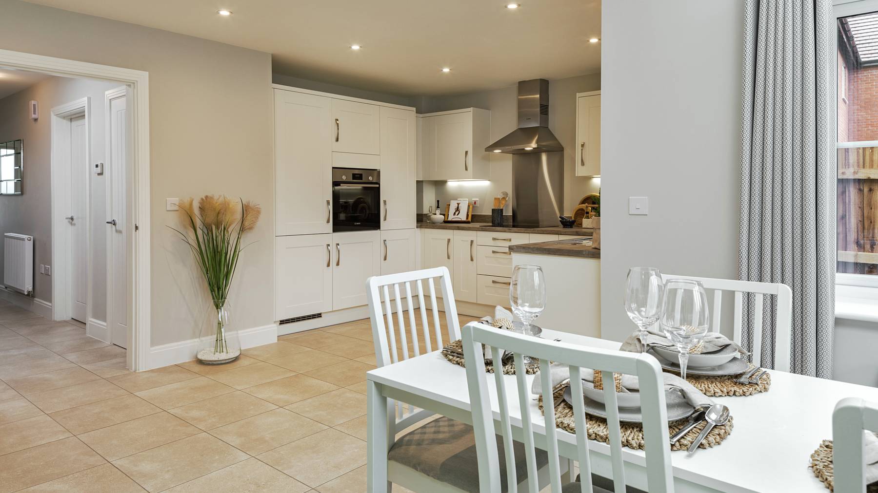 Attractive linear design means that the living spaces flow perfectly – the hallway opens onto a spacious front sitting room, and to the kitchen diner, fully fitted with high quality appliances, which extends to a light and airy family room opening out to the rear garden. Ideal for eating and entertaining together, for play and for relaxation. The main bedroom, to the front, is en suite with fitted wardrobes, and two more bedrooms and a bathroom complete a superb family home. Benefits from a single garage and 2 parking spaces.