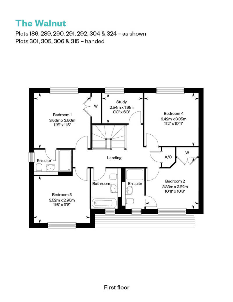 If you’re looking space and freedom, The Walnut is ideal. There are separate sitting and dining rooms – adaptable to suit your needs – while the kitchen and breakfast room, fully fitted with high-quality appliances, runs the whole depth of the design to create a lovely open family space. Two sets of patio doors lead out to the garden. Upstairs, two bedrooms are ensuite and have fitted wardrobes, while the other two are served by the family bathroom. There’s a study, play room or office too: whatever suits you best.