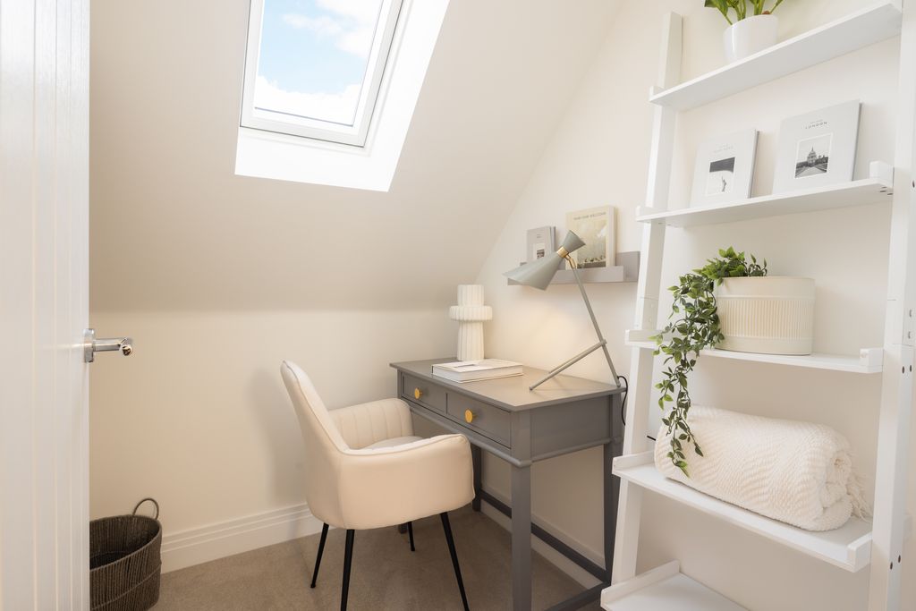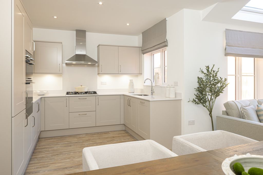 Offering flexible living over three floors, The Mulberry accommodates everyone in contemporary comfort. A spacious open plan kitchen/dining room/ family room with French doors shares the ground floor with an impressive vaulted ceiling skylight. Upstairs provides a real sanctuary, where you can relax in two double bedrooms, a private dressing room and en suite to bedroom one, as well as the shared family bathroom for bedroom two. Or escape to two more bedrooms on the second floor, which has a shower room off of bedroom four and a joint study to share. Includes a garage and 2 parking spaces.
