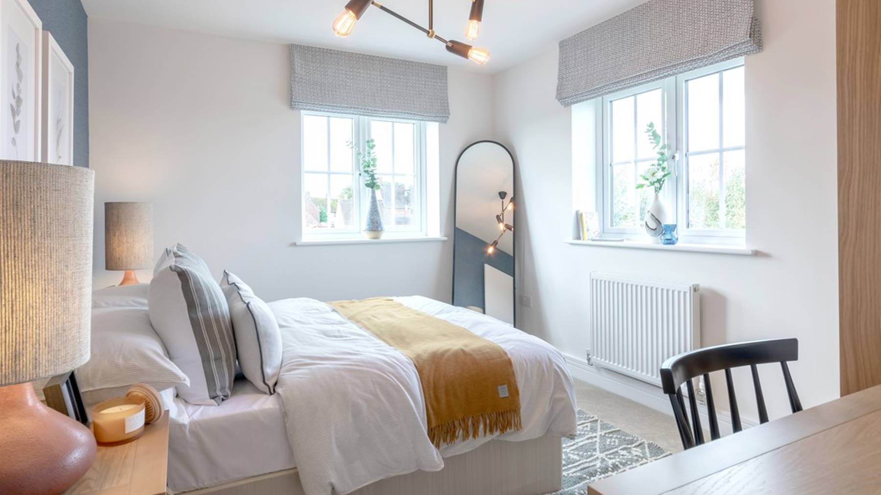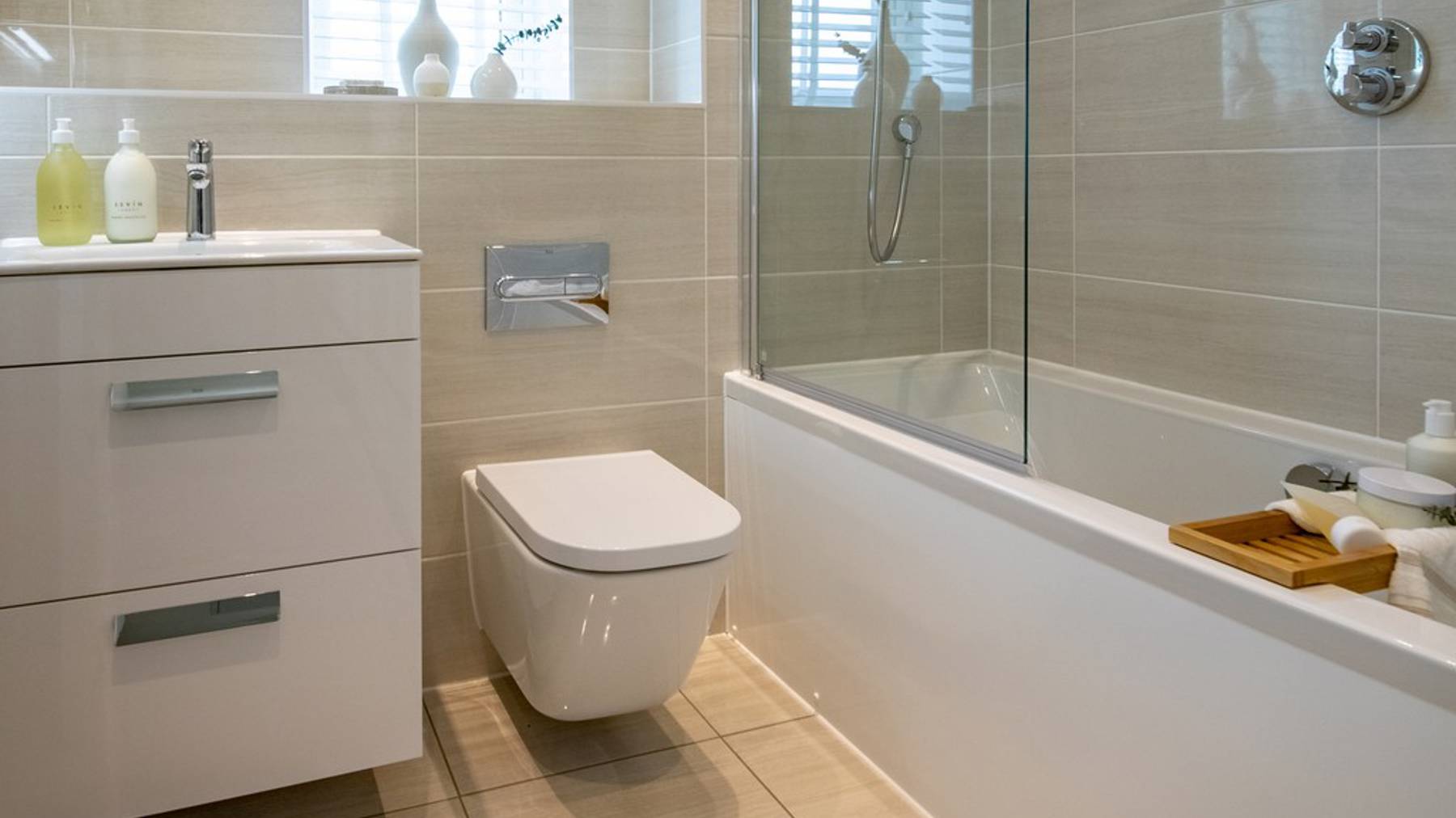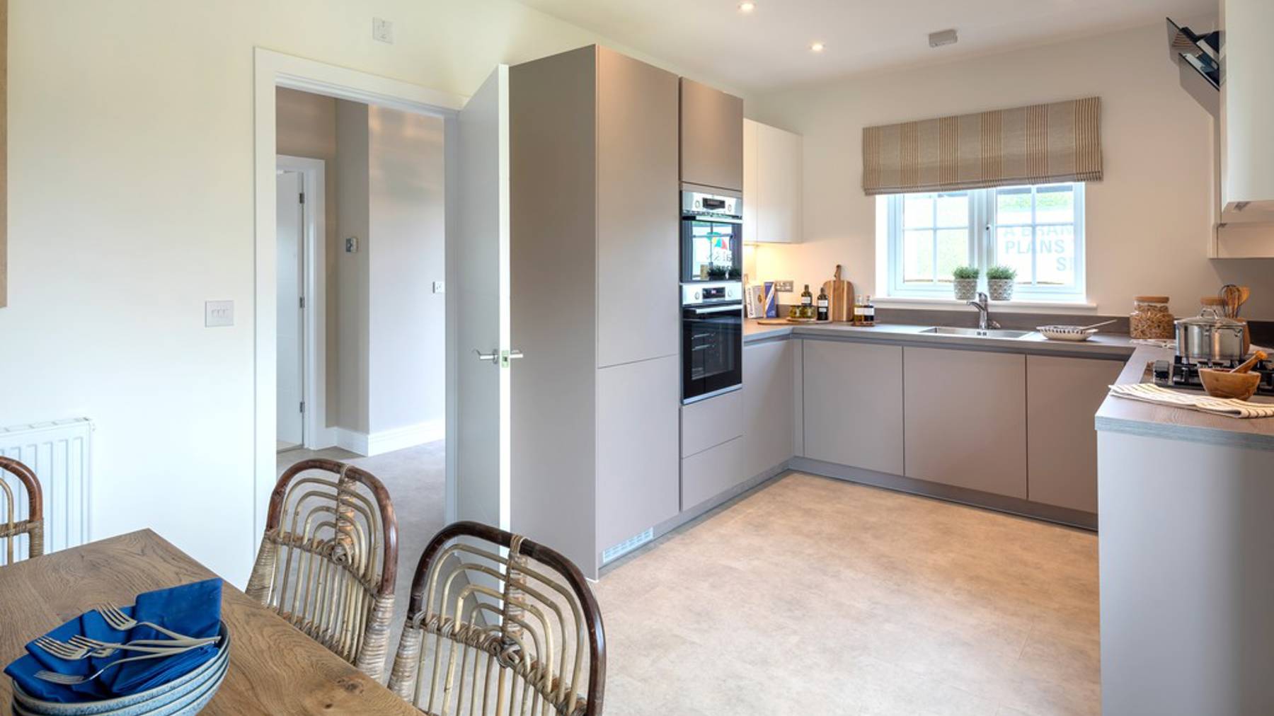 The kitchen is fitted with integrated Bosch appliances while bathrooms and the downstairs cloakroom feature full-height Minoli tiles and Roca sanitary ware. The double-aspect main bedroom features an en-suite bathroom and built-in wardrobe to create a clean, secluded private space.