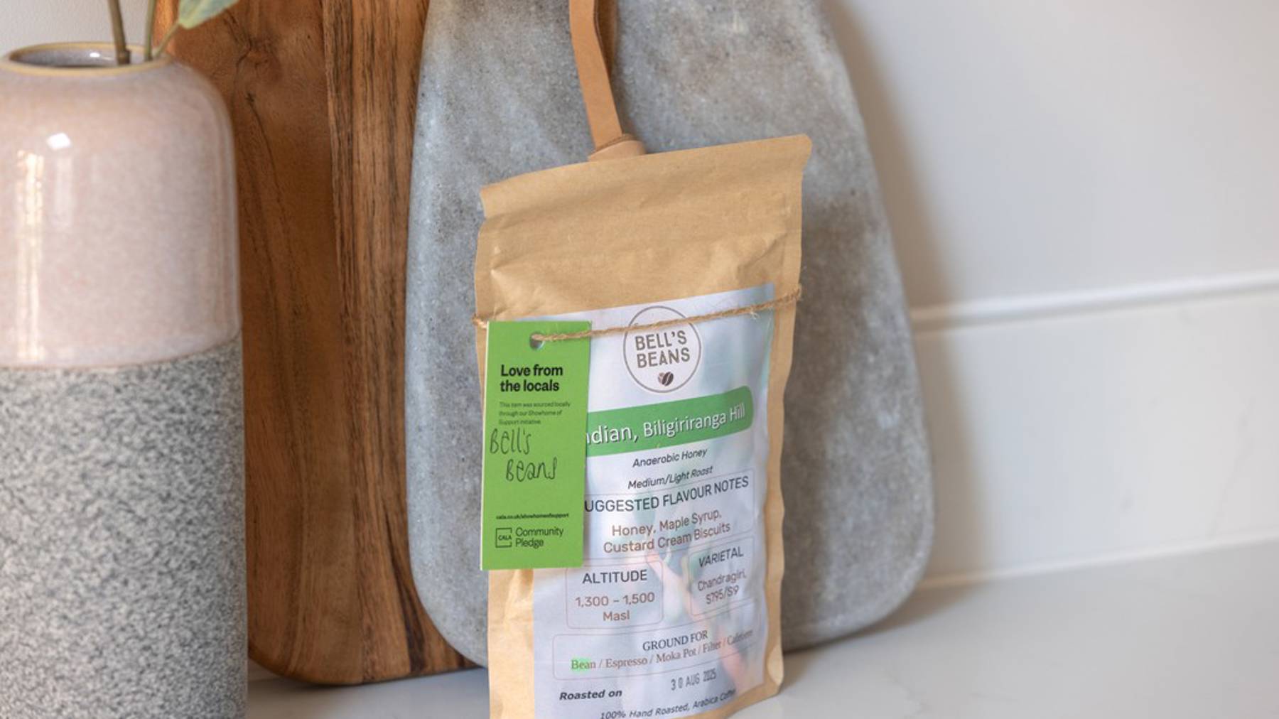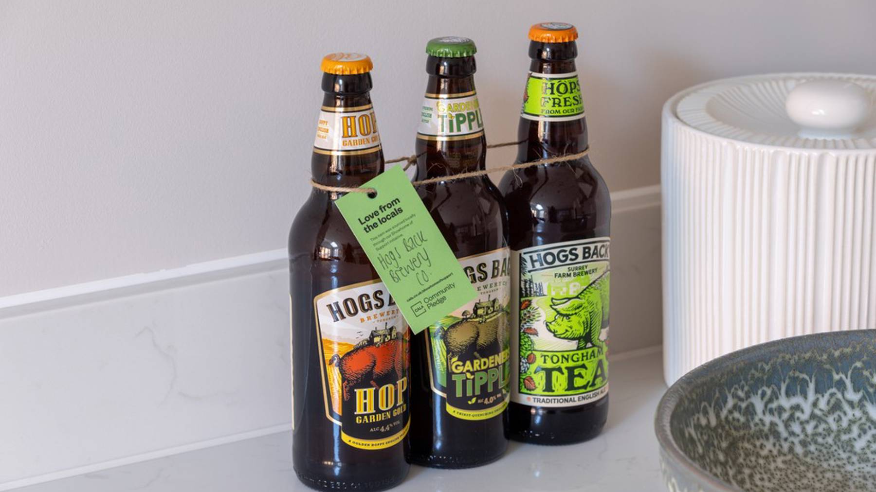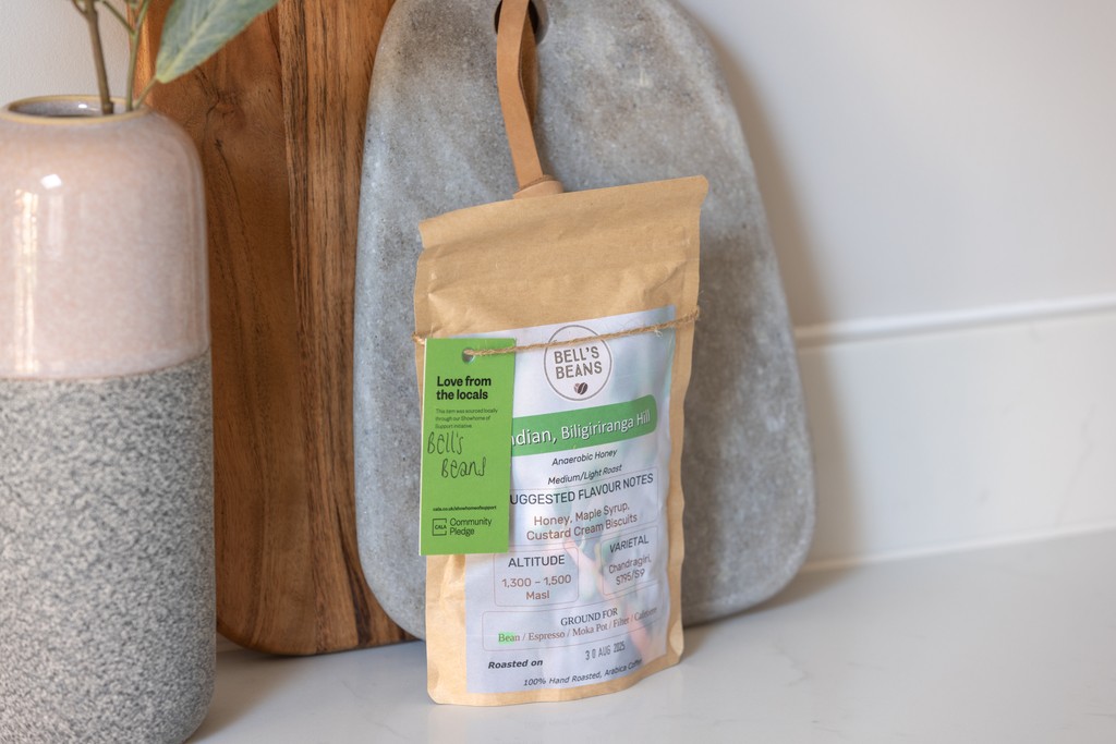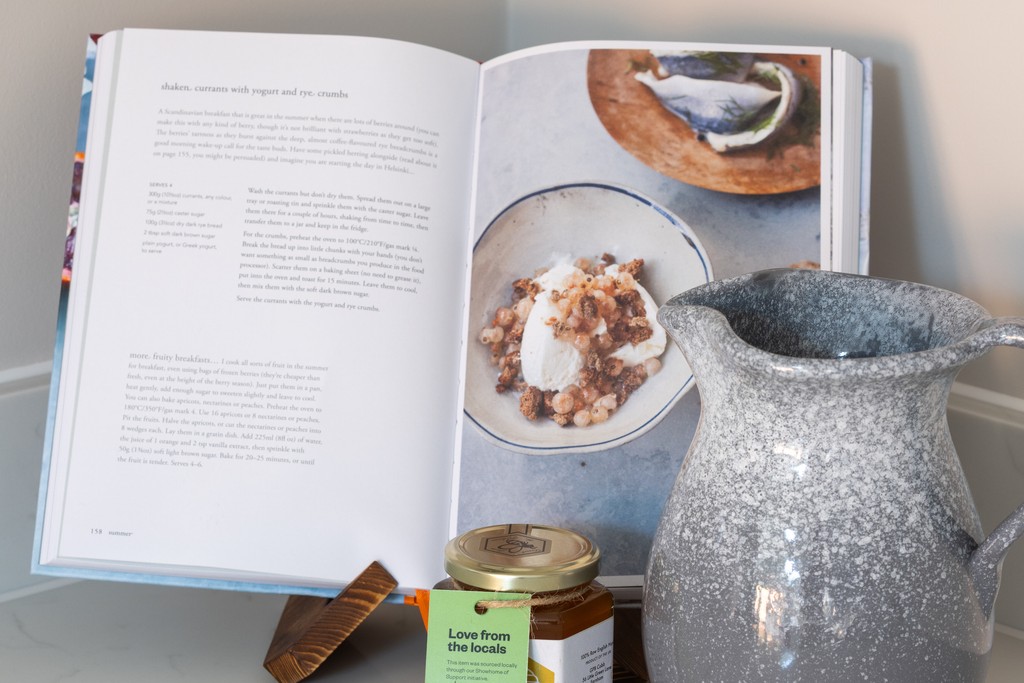 In the kitchen, visitors are greeted with a variety of treats. These include bottled beers from Hogs Back Brewery, roasted coffee beans from Bell’s Beans, and pure raw honey from Little Green Bees, each produced locally and reflecting the flavours of the surrounding Farnham countryside.