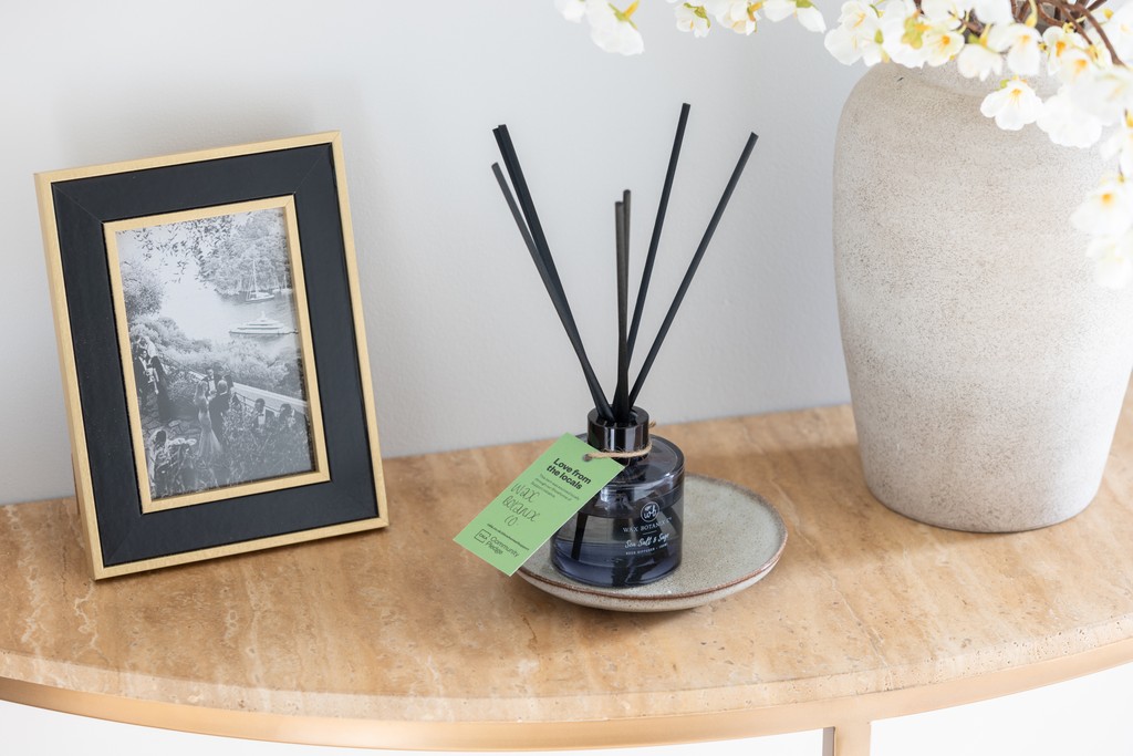 As you enter the showhome, welcoming scents fill the home thanks to a delightful reed diffuser from Wax Botanix, alongside eco-conscious candles from Rosemary and Ridgeway and natural soy soaps from Green Laurels.