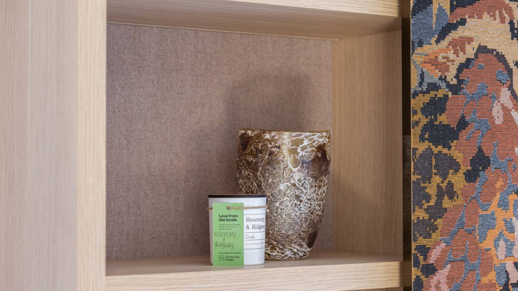 Art and design take centre stage throughout the interiors. Textile designer Nao.O.Fukumoto has provided a striking handwoven scarf, crafted using the traditional Japanese Ikat technique with natural silks, wools and linens. From the handcrafted ceramics of Wonersh Interiors to Susie Lidstone’s watercolours capturing Farnham’s character and the uplifting floral prints of Eimear Nichols, each piece brings its own personality to the Birchwood showhome.